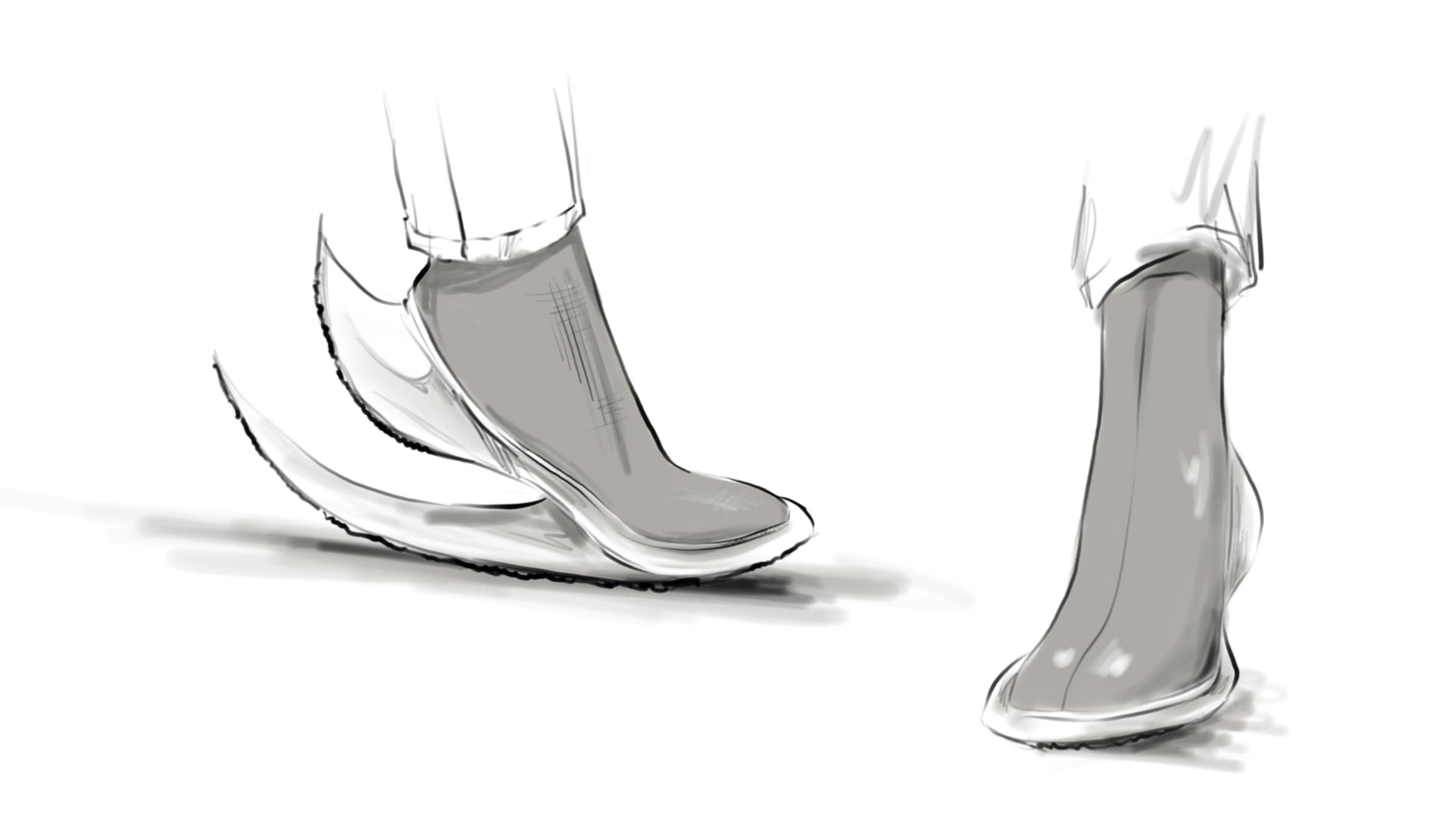 The Idea behind this shoe is to combine a high heel and modern running shoes in a futuristic context.