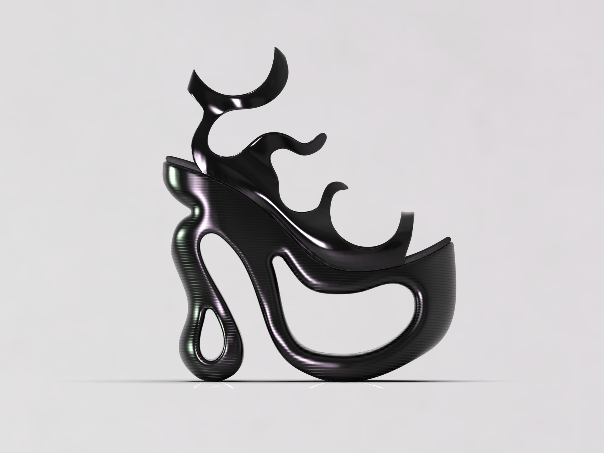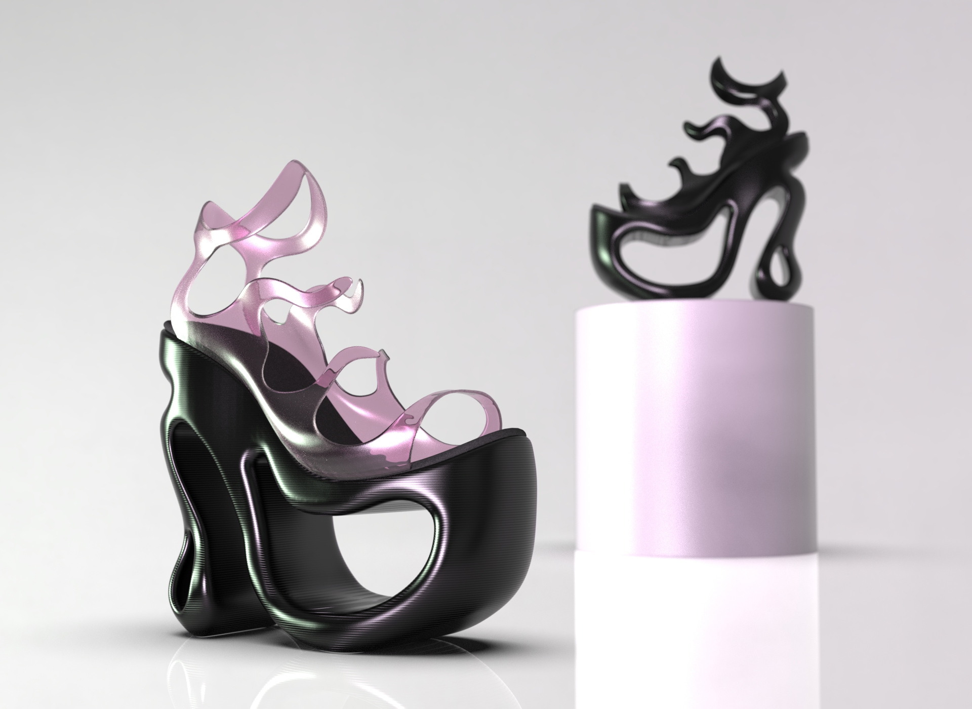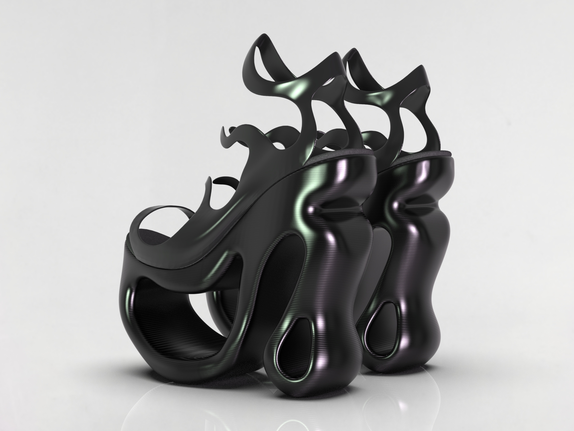 Introducing TireNova, a bold fusion of innovation and sustainability. These high-platform shoes feature 3D-printed soles crafted from recycled tire material, redefining eco-conscious fashion. The flexible, biobased PLA upper adds a translucent, modern touch, blending fluid curves with structural integrity. TireNova combines cutting-edge design with reclaimed resources, creating unique style while reducing environmental impact. Elevate your presence and reduce your footprint!