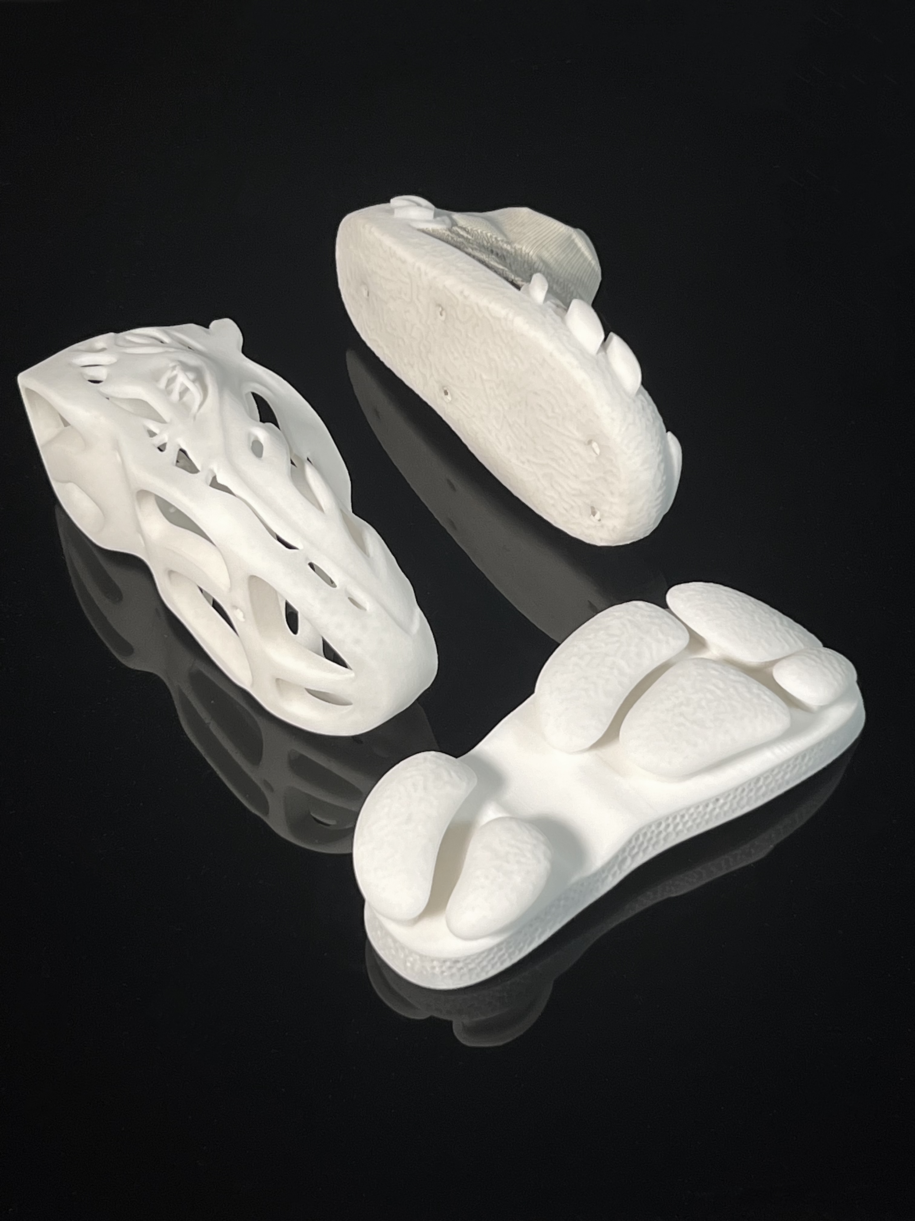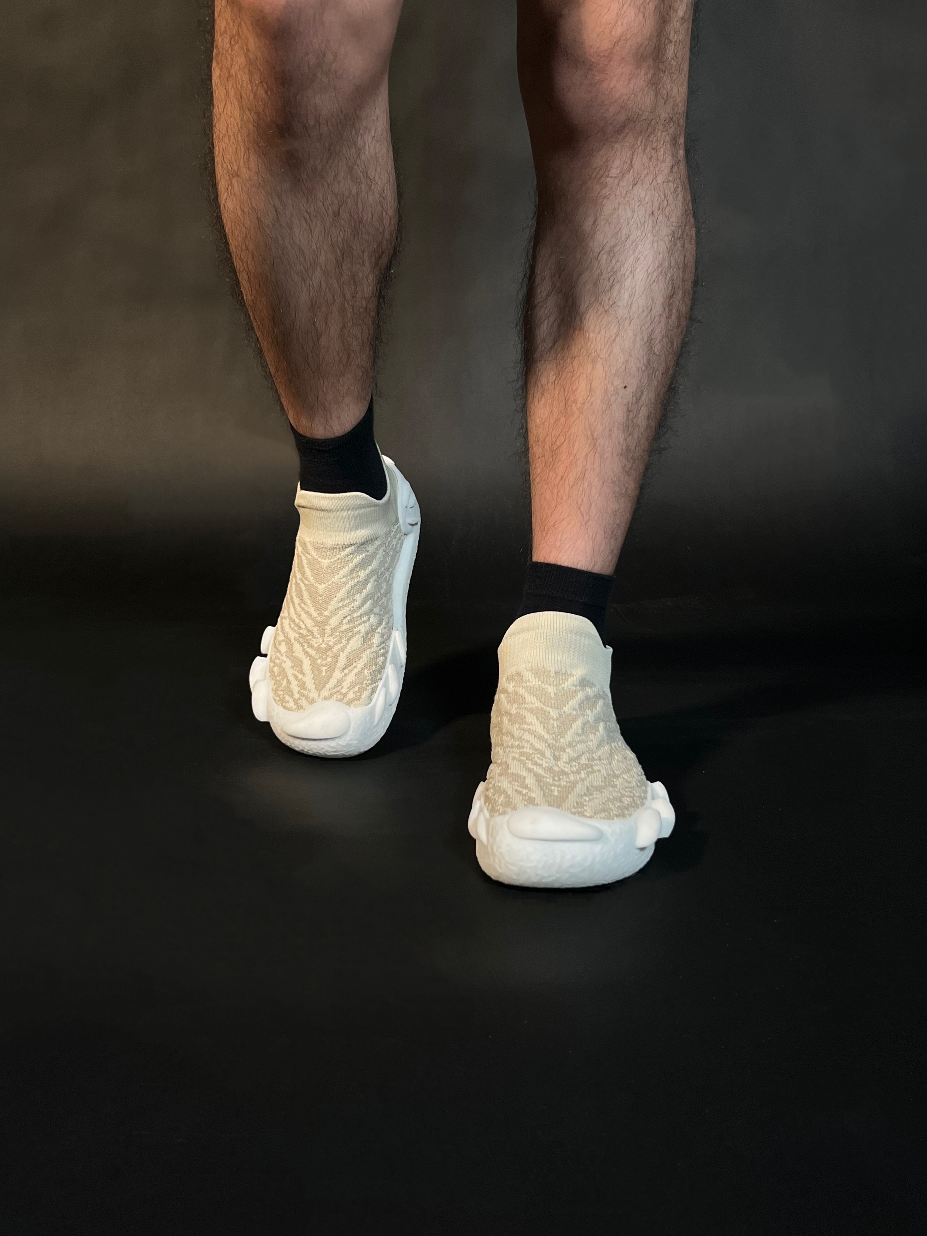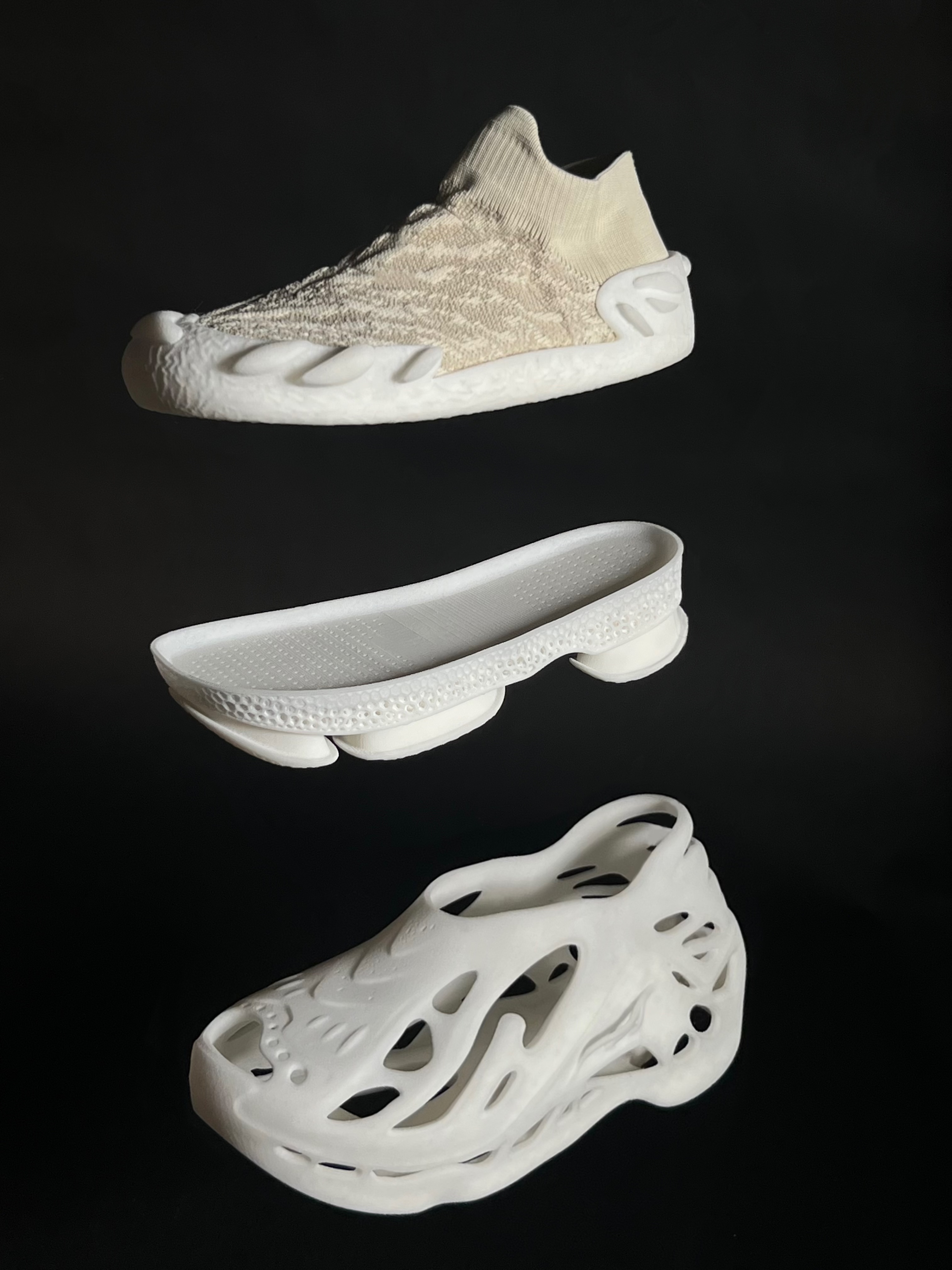 The Adaptive Symbiotic Shoes consist of three versatile modules: Exoskeleton frame, plug-in sole, and sock shoes, each with unique functionality. These can be combined as desired, with the outsole integrated into the midsole for support. Using 3D printing with Recreus TPU, the design eliminates adhesives, promotes sustainability, and allows recycling and remanufacturing, extending the shoe's lifespan. Through modular assembly, users can switch forms to adapt to scenarios like rainy days, gym workouts, or commuting, balancing comfort and fashion with vibrant color combinations.