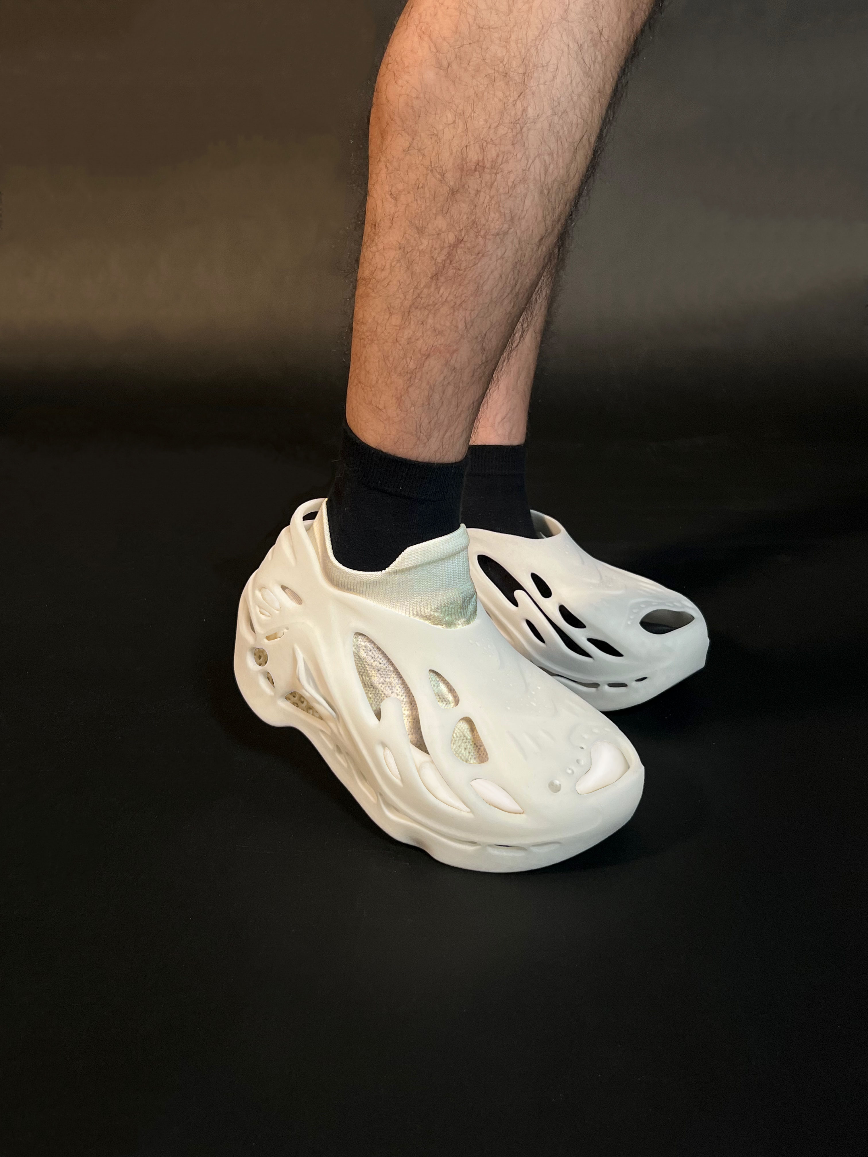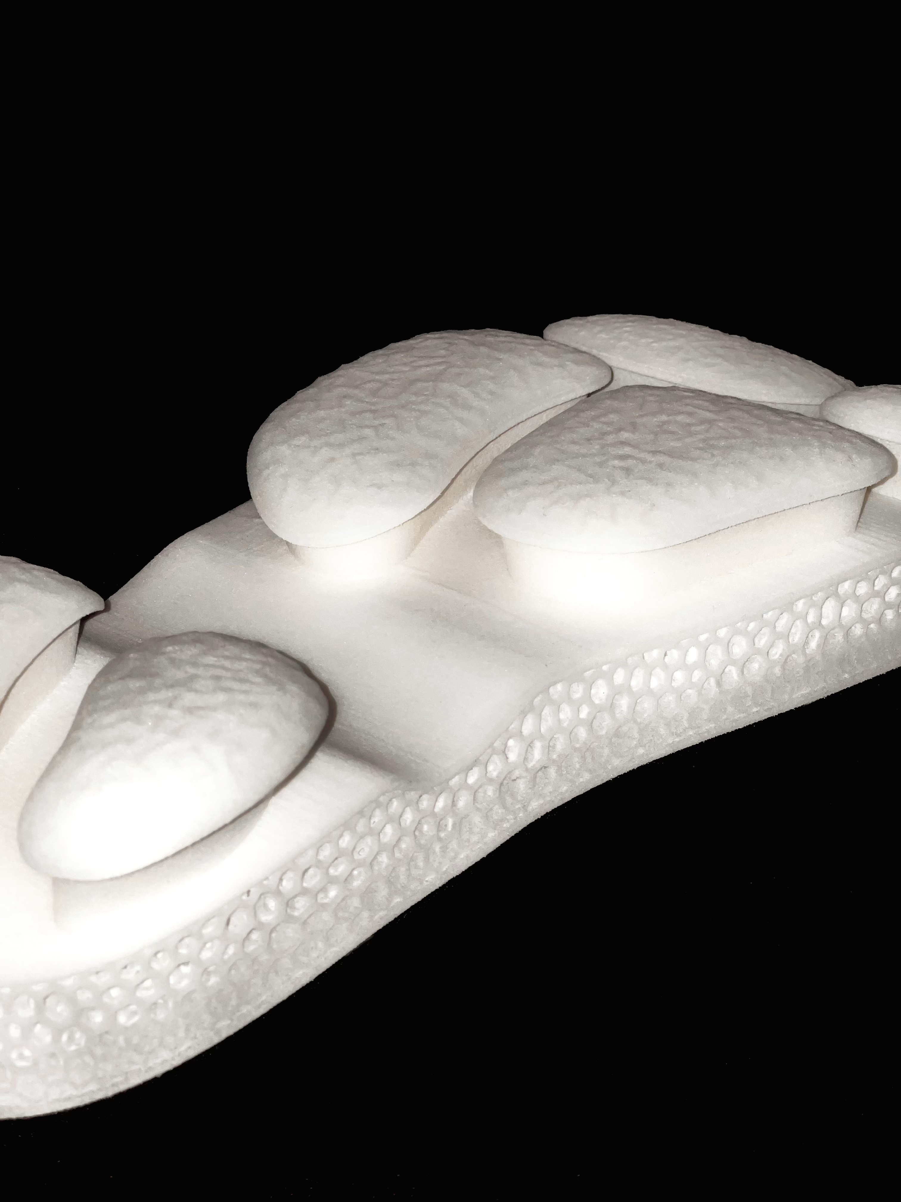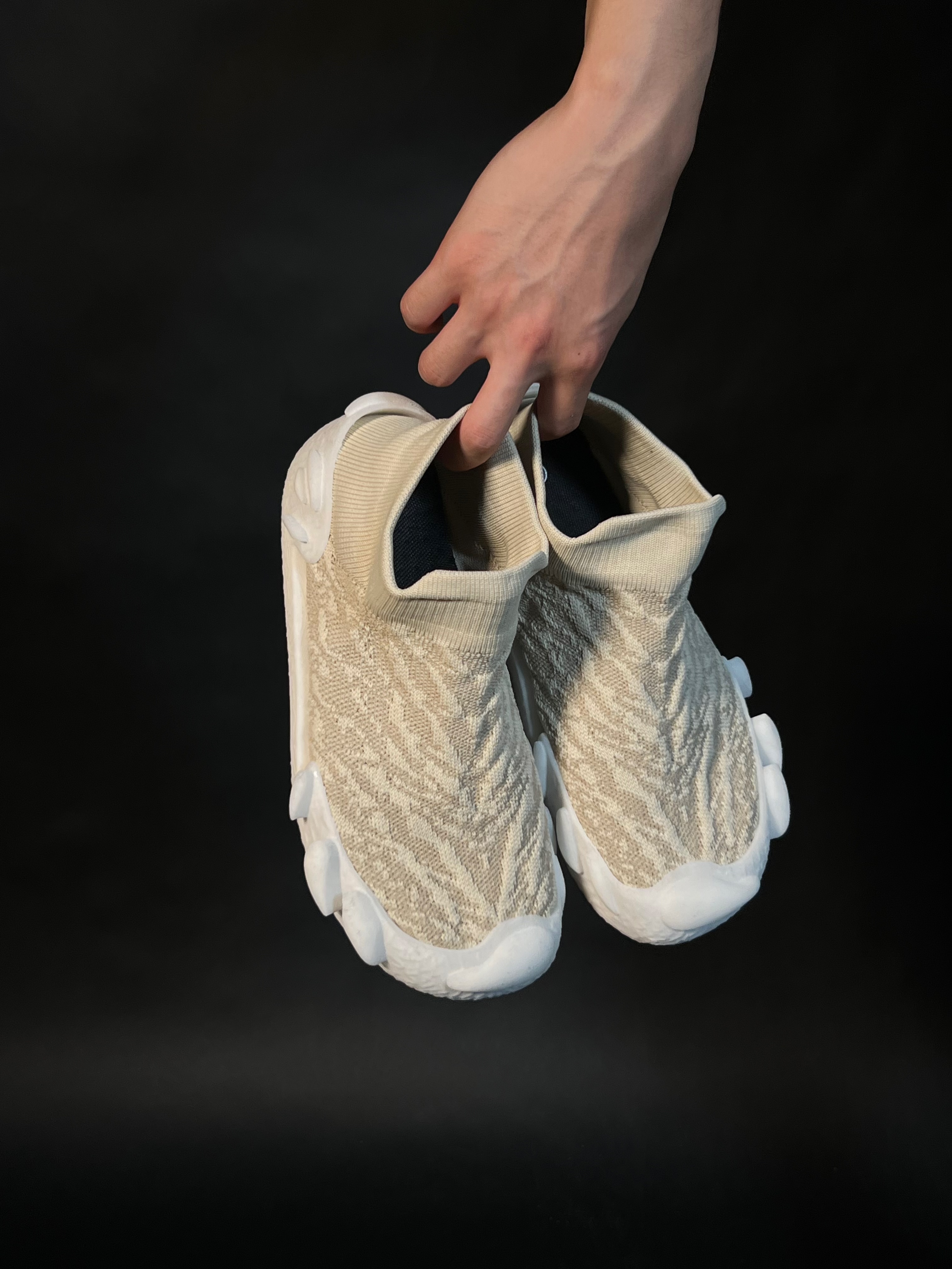 The Adaptive Symbiotic Shoes consist of three versatile modules: Exoskeleton frame, plug-in sole, and sock shoes, each with unique functionality. These can be combined as desired, with the outsole integrated into the midsole for support. Using 3D printing with Recreus TPU, the design eliminates adhesives, promotes sustainability, and allows recycling and remanufacturing, extending the shoe's lifespan. Through modular assembly, users can switch forms to adapt to scenarios like rainy days, gym workouts, or commuting, balancing comfort and fashion with vibrant color combinations.