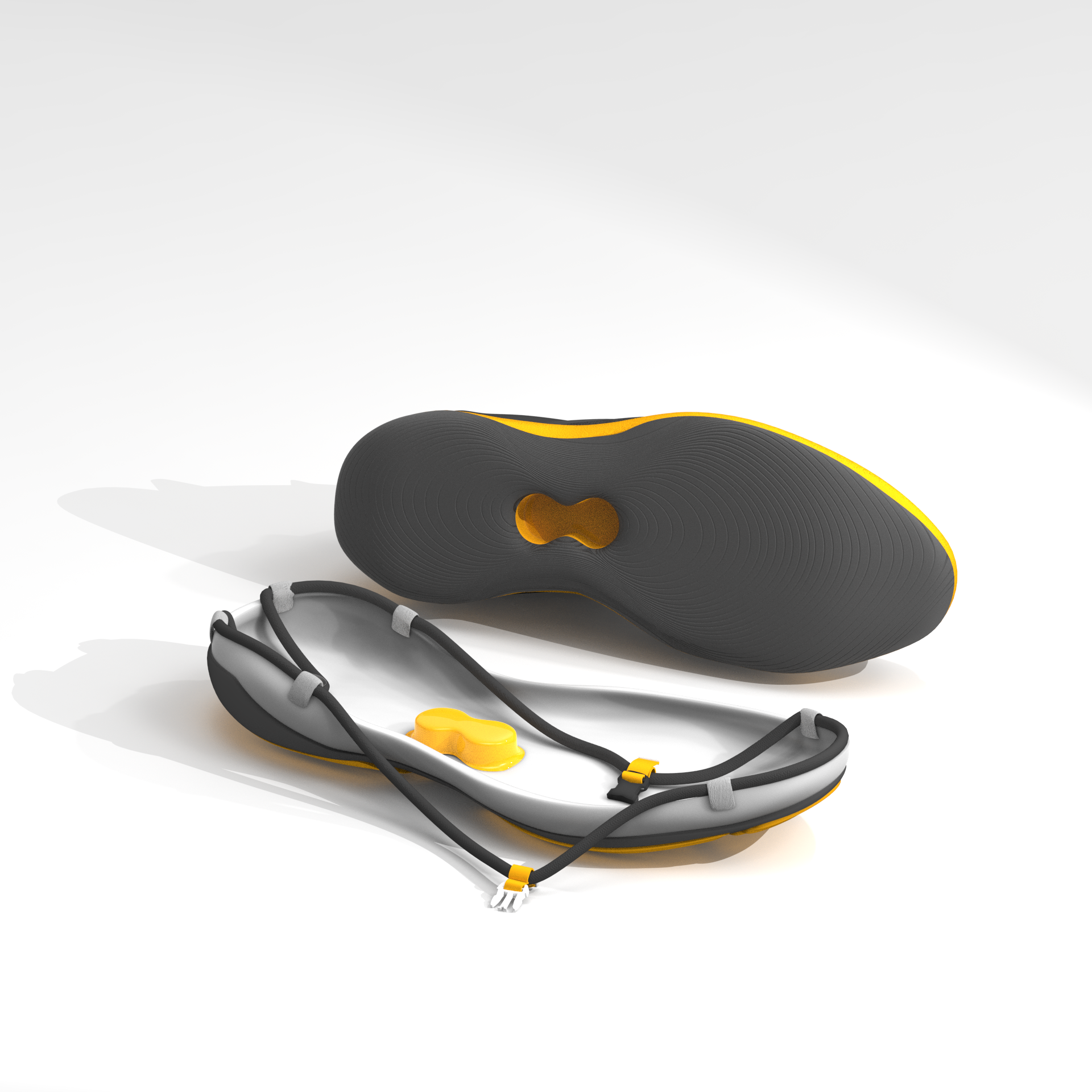 The separate outsole is attached with a rope with 5 points of lockdown around the shoe to ensure security. The bottom of the separate outsole has a protruding piece that fits into the basketball shoe's outsole to provide multidirectional stability by preventing sliding.