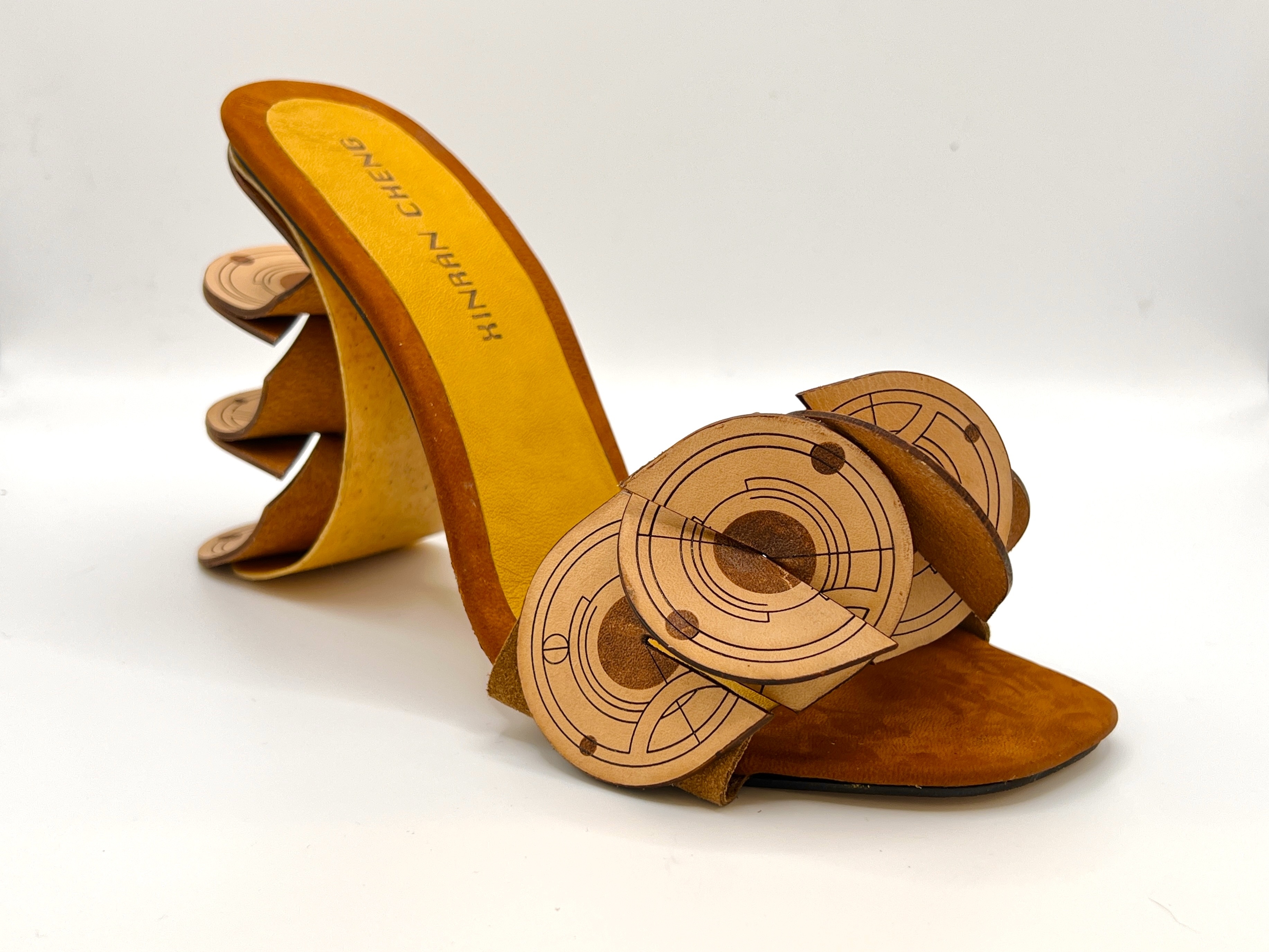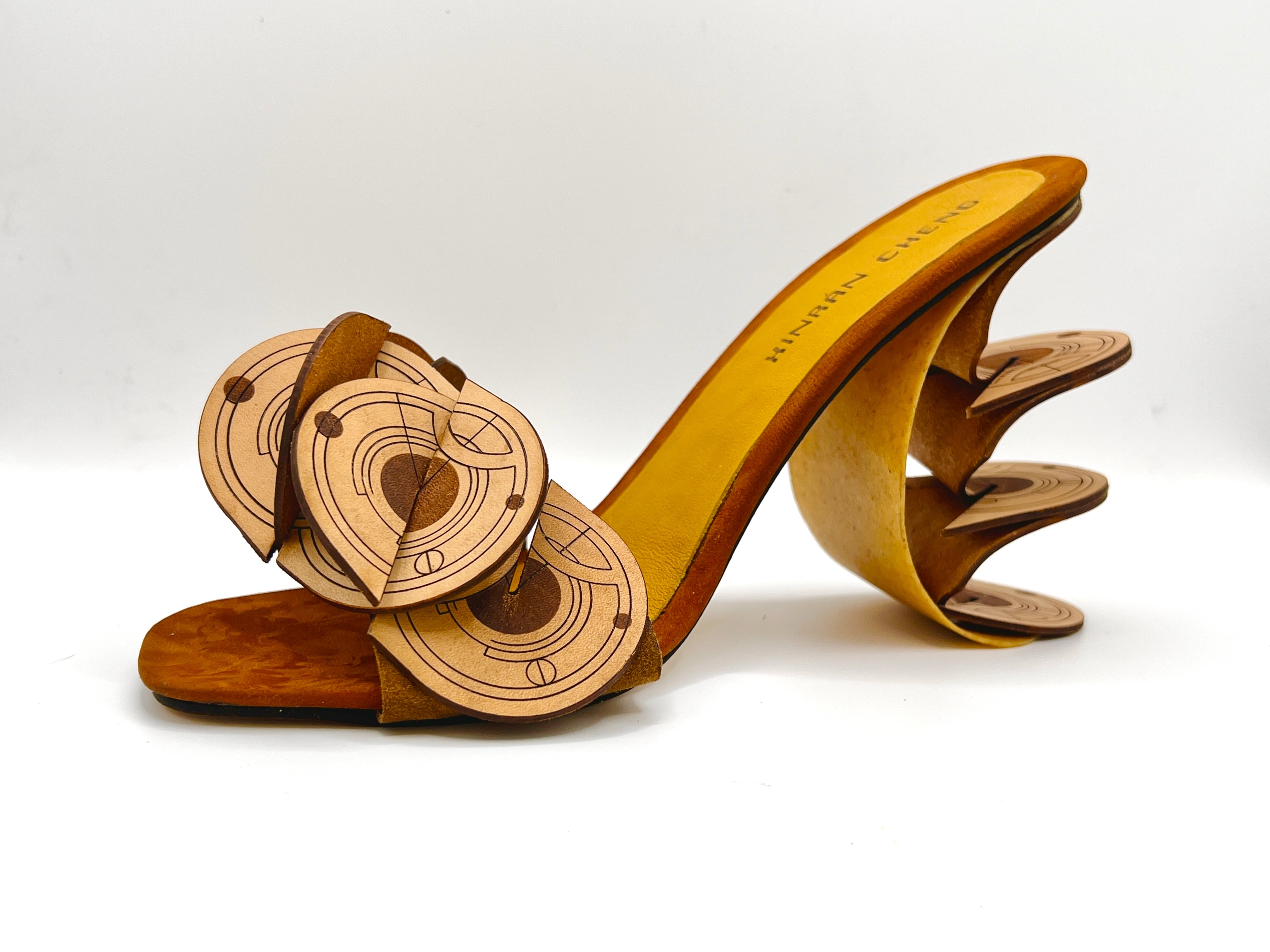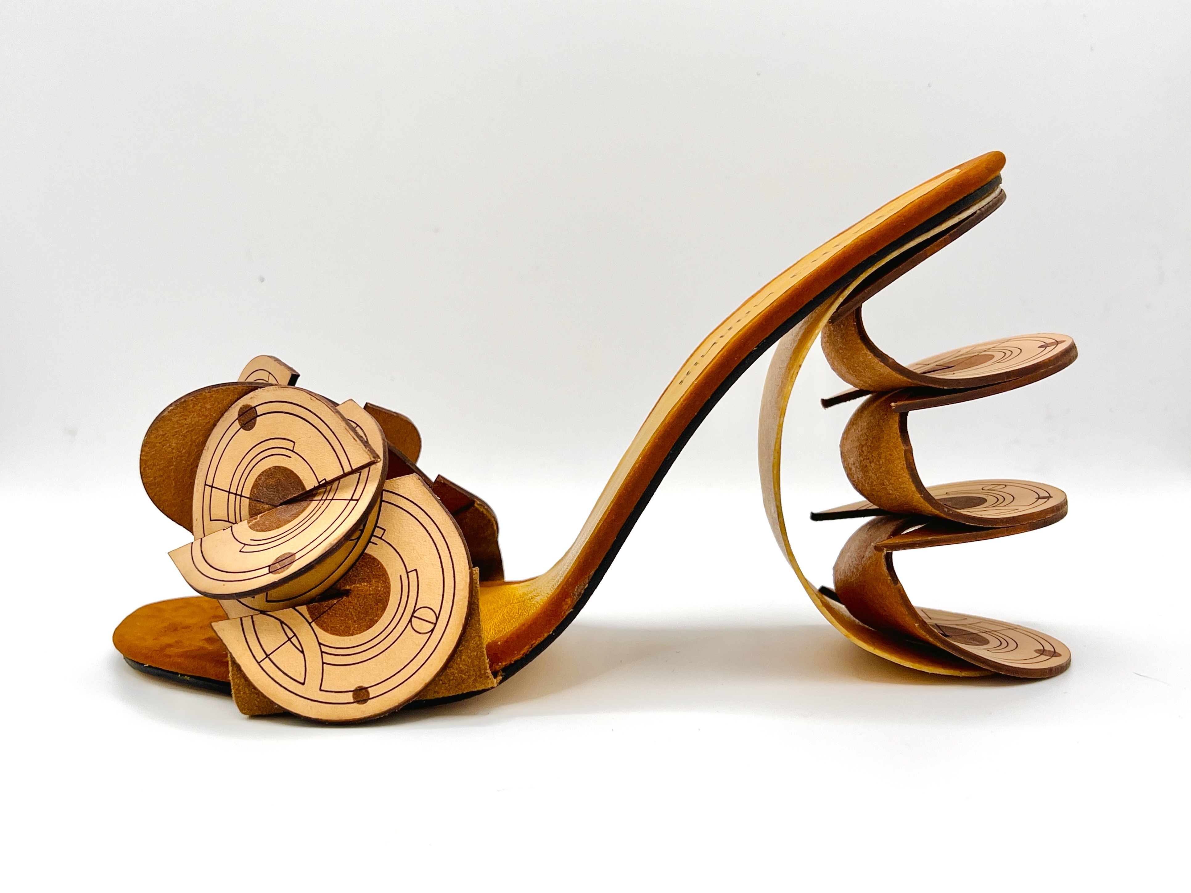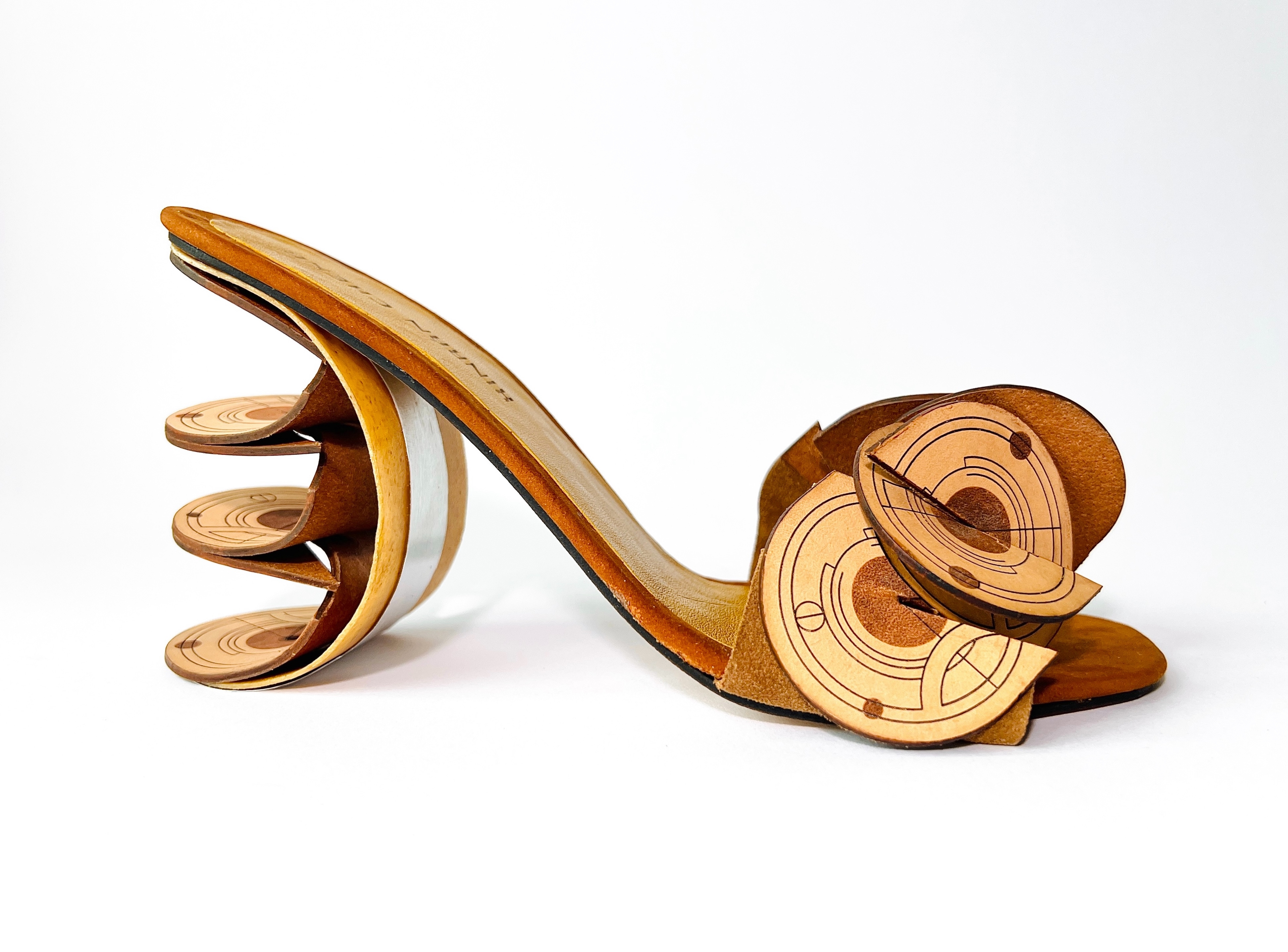 Atomic Poem is crafted from sustainable materials including Veg-Tan leather, recycled leather/leather-bonding, and metal. Inspired by retro-futurism, this design incorporates a modular system that merges a romantic vision of the future with the elegance of the past. Just as individual atoms bond to form diverse molecules, our thoughts, emotions, and histories interlock to compose the narrative of who we are as a collective humanity.