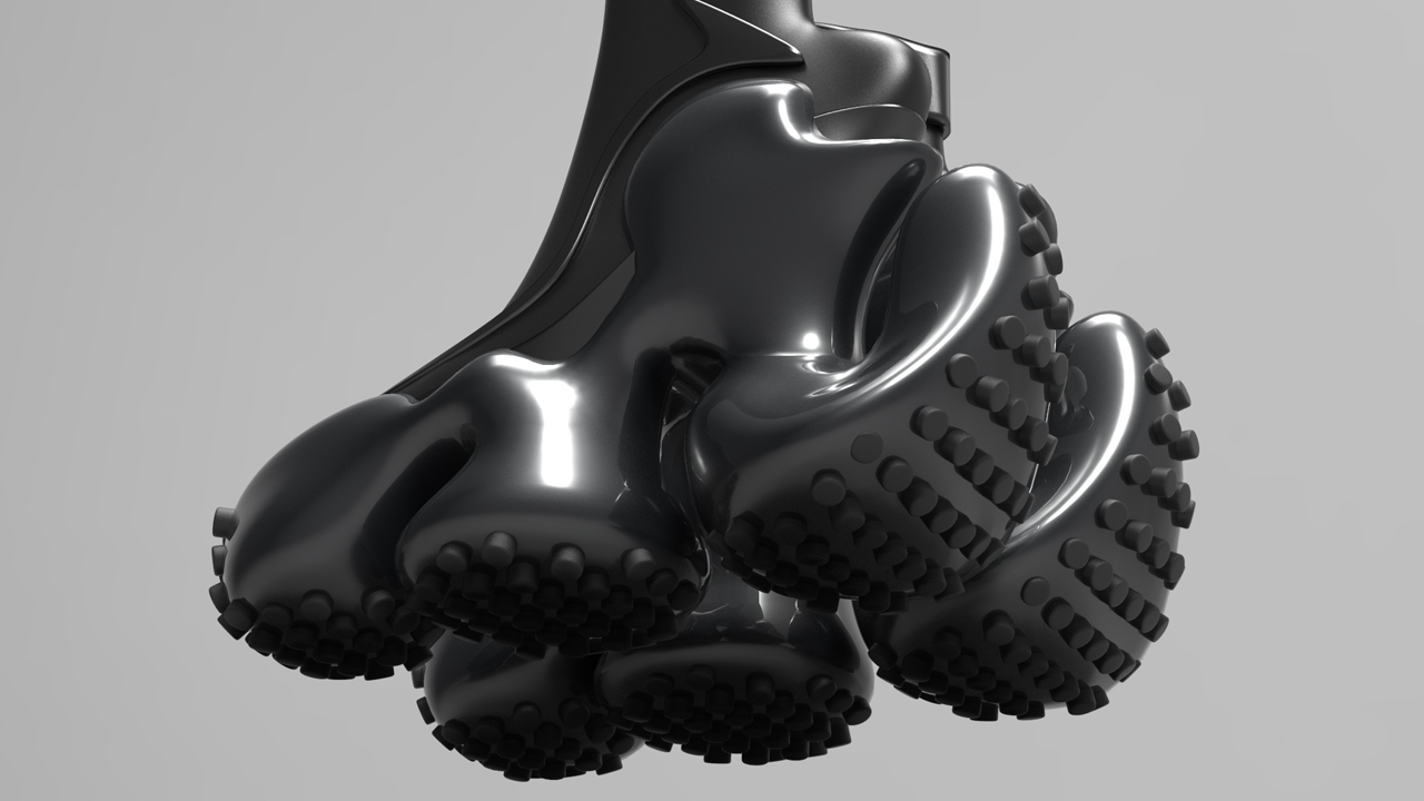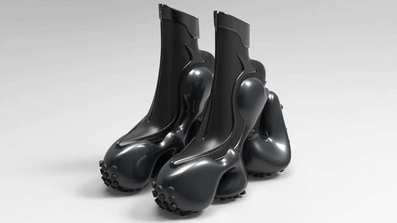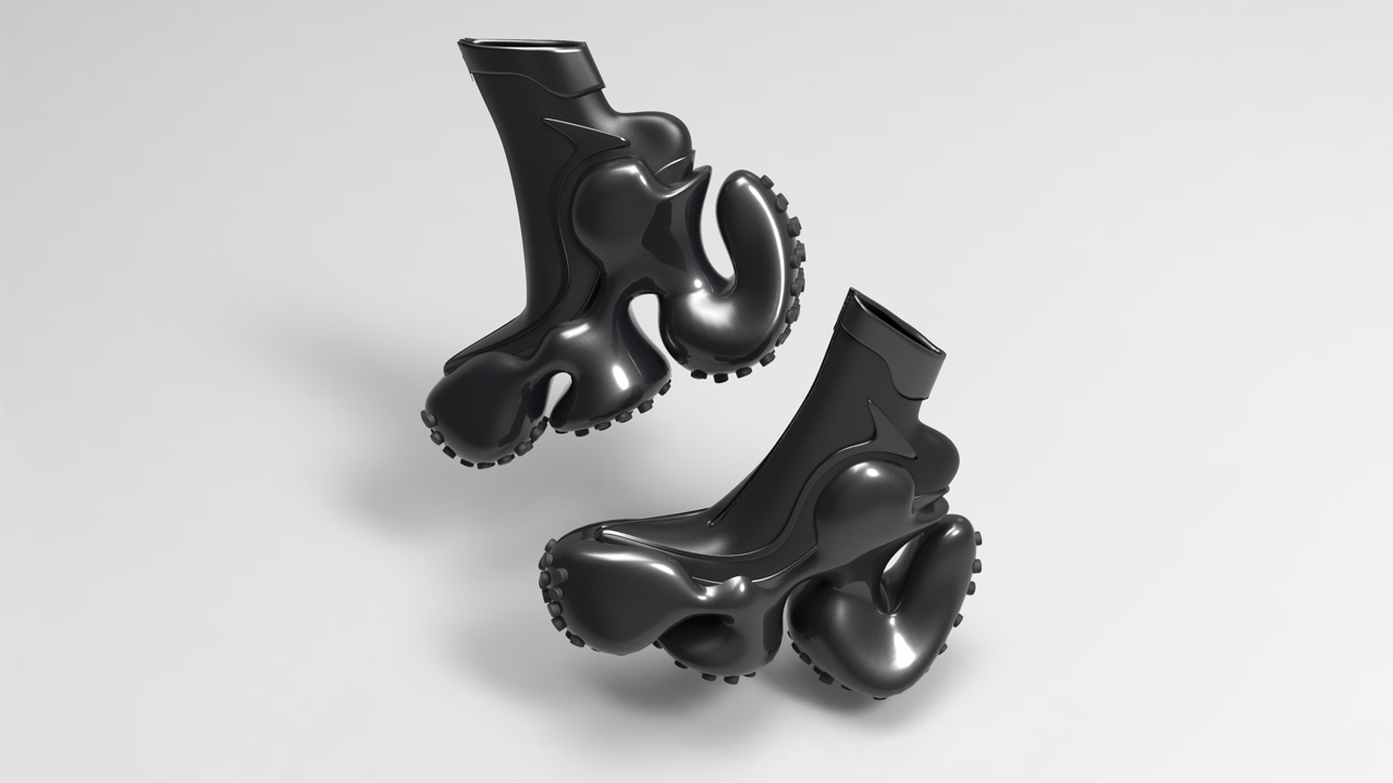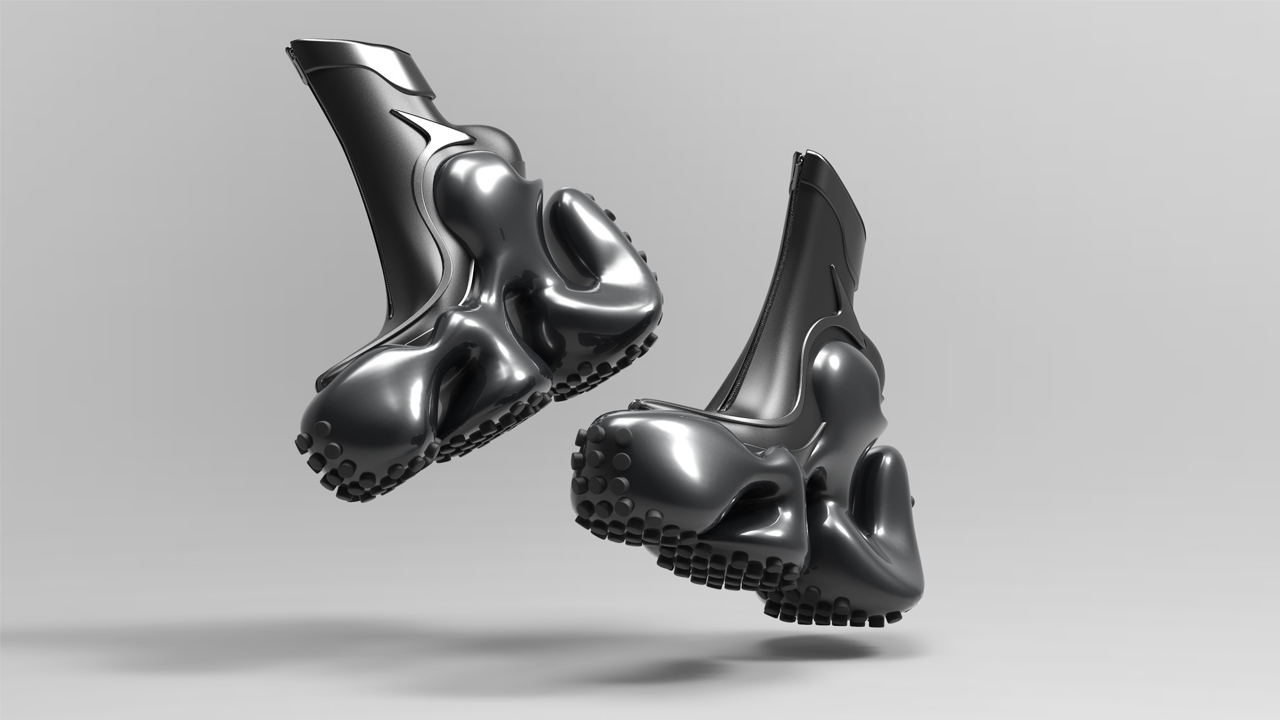 I seek to change the classic form of platform and women's heels, looking for innovation in shape and the exploration of a new type of original sole. For the concept I was inspired by a personal philosophy in which I see the mind as a deep ocean, full of ideas and thoughts to be discovered. The upper symbolises a diver's suit, the foot as a diver going into the water in search of discovering the depths of the mind to new ideas, foot's submerging into the sole water. The shape of the platform is a conceptual representation of water and brain folds, comparing the brain to an ocean.