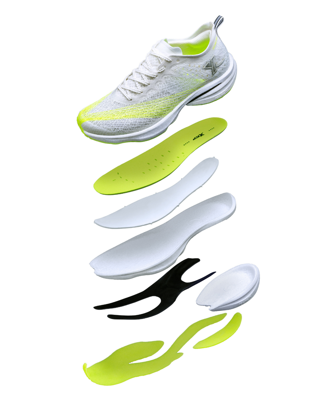 Designed for track racing, these sneakers firmly grab the plastic racetrack with its parametric CPU sole. The X-PLATE hybrid potential energy plate provides strong support. The widened area at the force point of the front metacarpal bone and the DROP 7MM heel make the product suitable for racing on the plastic racetrack. With bionic cocoon design to ensure breathability, supercritical X-ACE midsole and 3D printing enhance durability and resilience of the sneakers.
