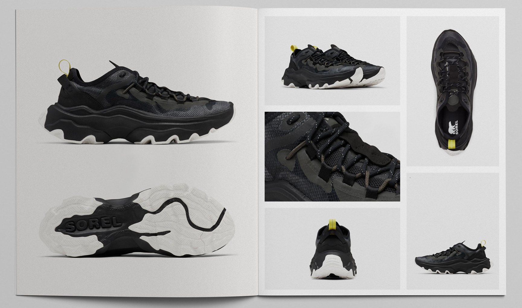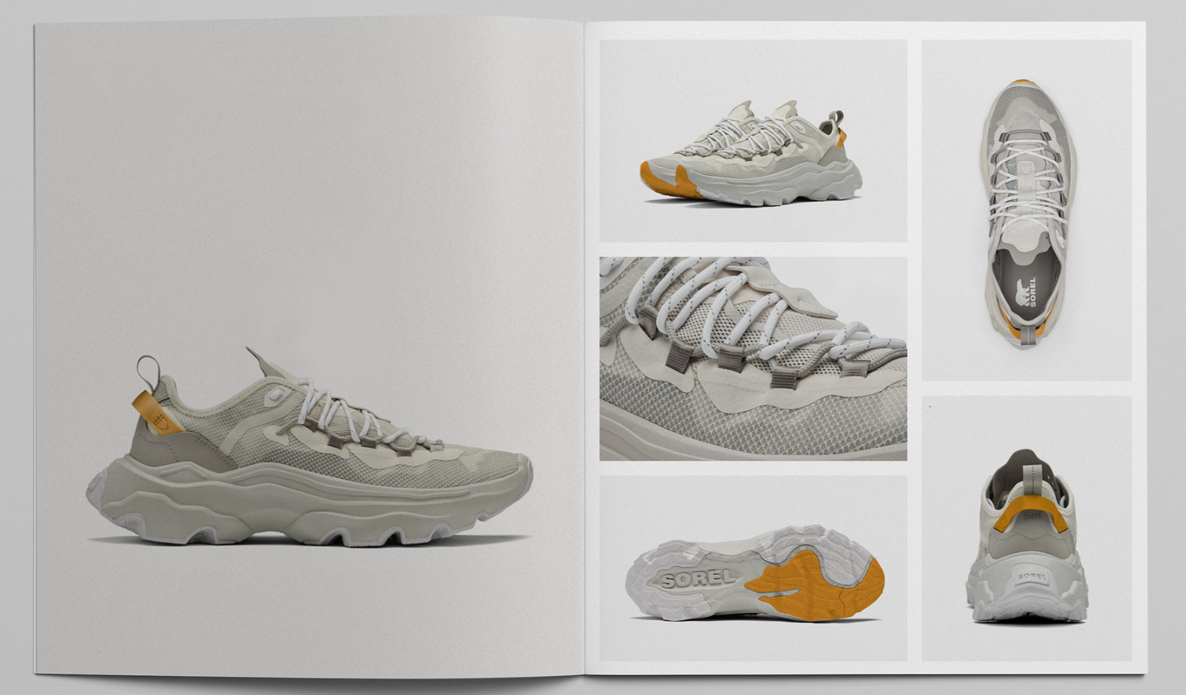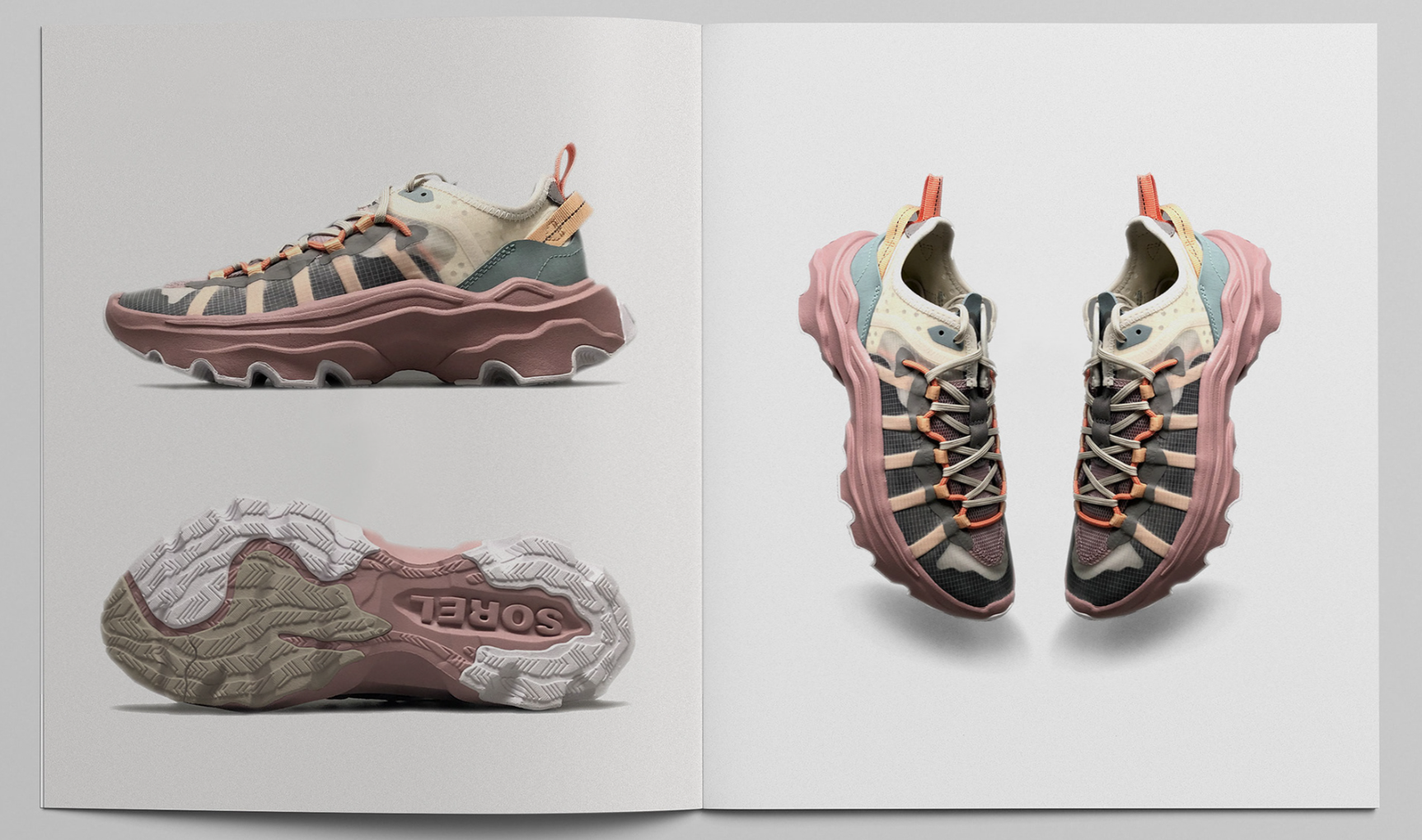 "INTO THE WILD" was the creative direction for this season’s Kinetic Breakthru, re-imagining Sorel's iconic sneaker as an avant-garde lifestyle sneaker. The goal was to blend Sorel’s outdoor heritage with city-focused design. I integrated Sorel's signature "scalloped traction" for functionality, pair with a chunkier midsole inspired by vintage Sorel boots. The upper features nylon webbings for lightweight lockdown, with a wild card movement pattern for a unique aesthetic. The design modernizes outdoor elements, offering a softer, more comfortable, and flexible sneaker ideal for urban consumers