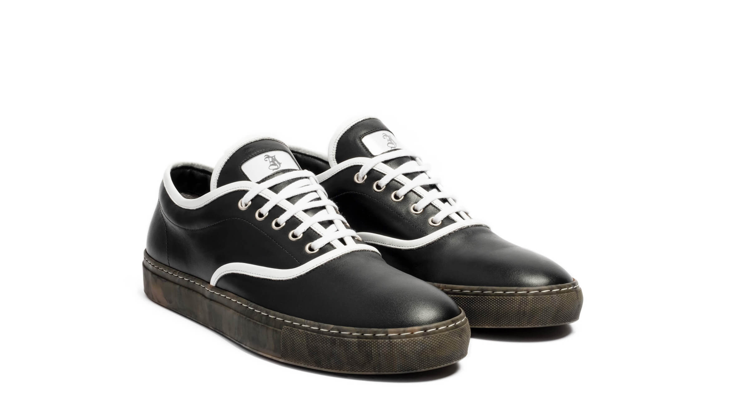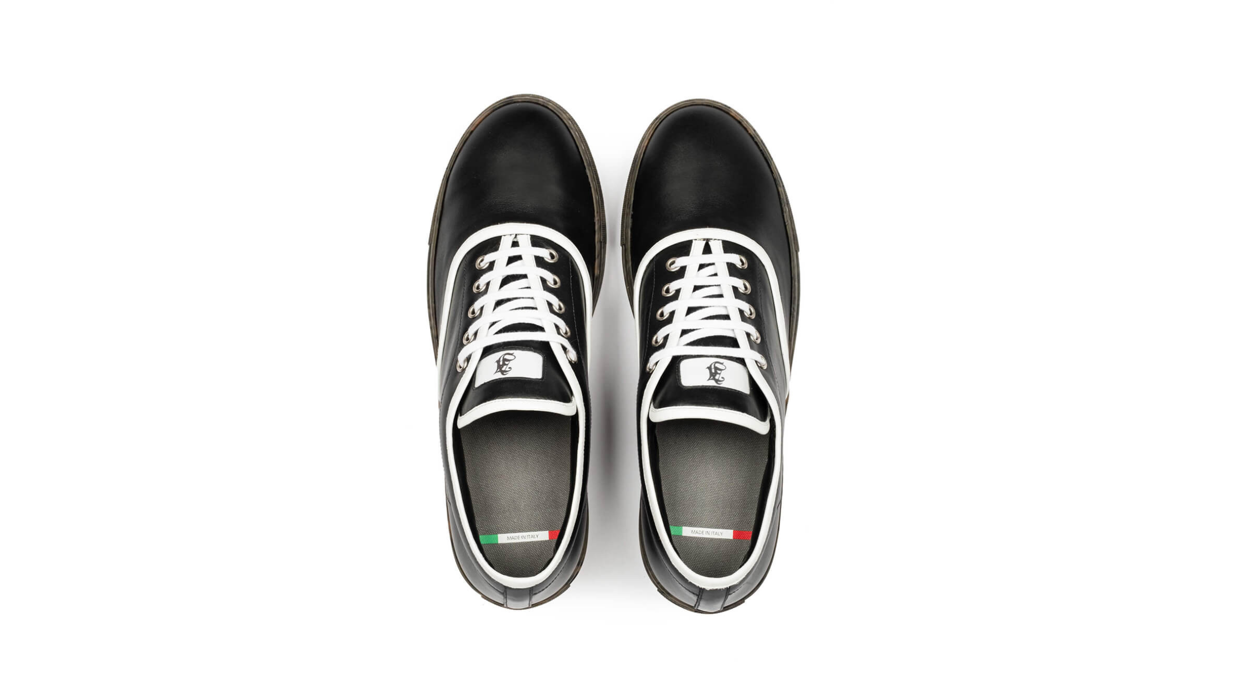 A classic skaters style low-top sneaker, with the logo on the tongue. The shoe is made of genuine Italian leather, natural cotton laces and metal reinforced eyelets.