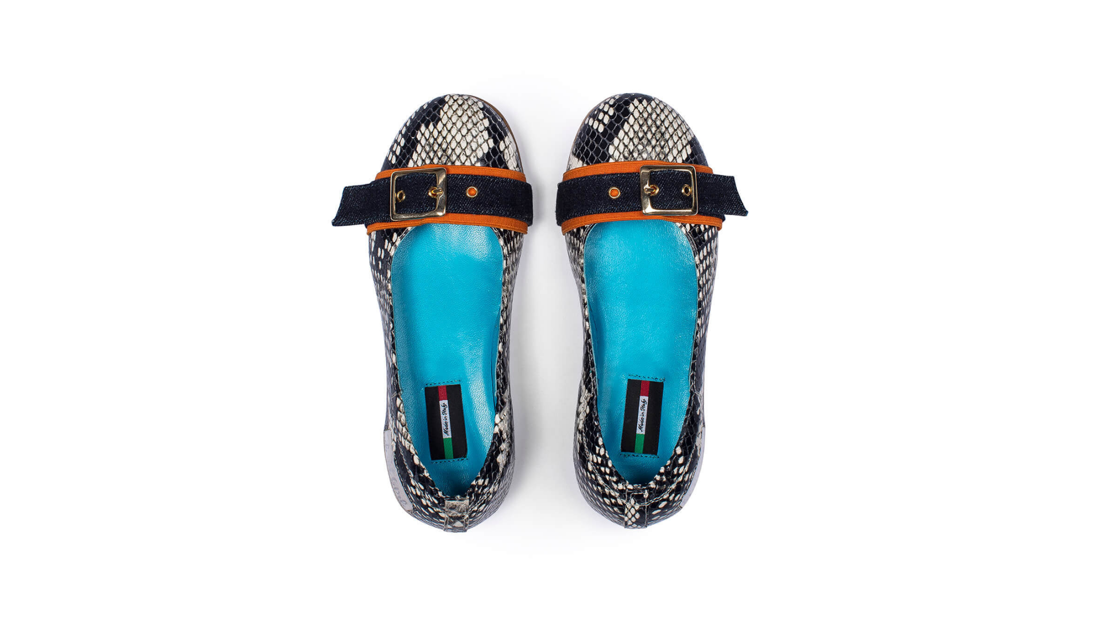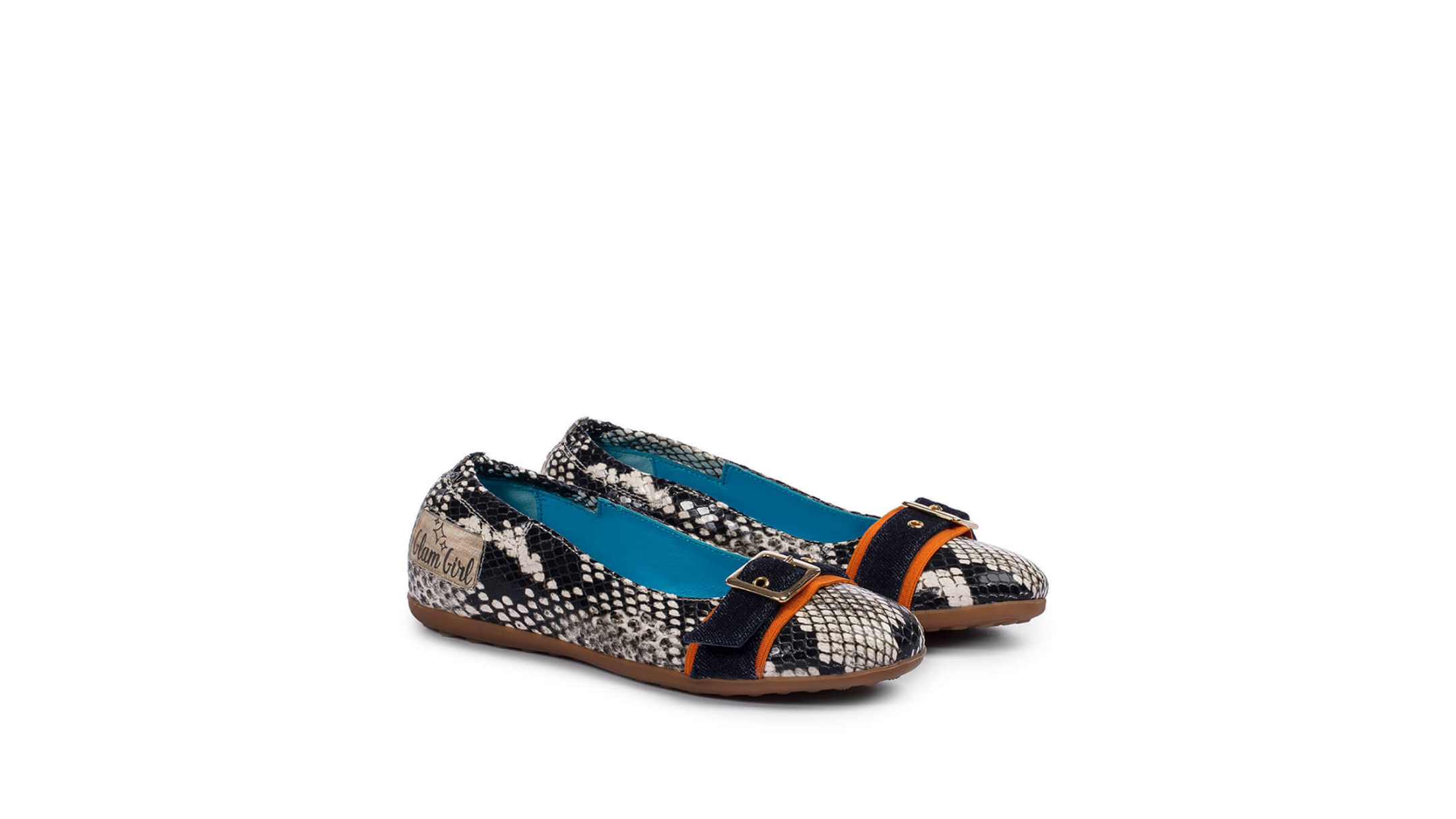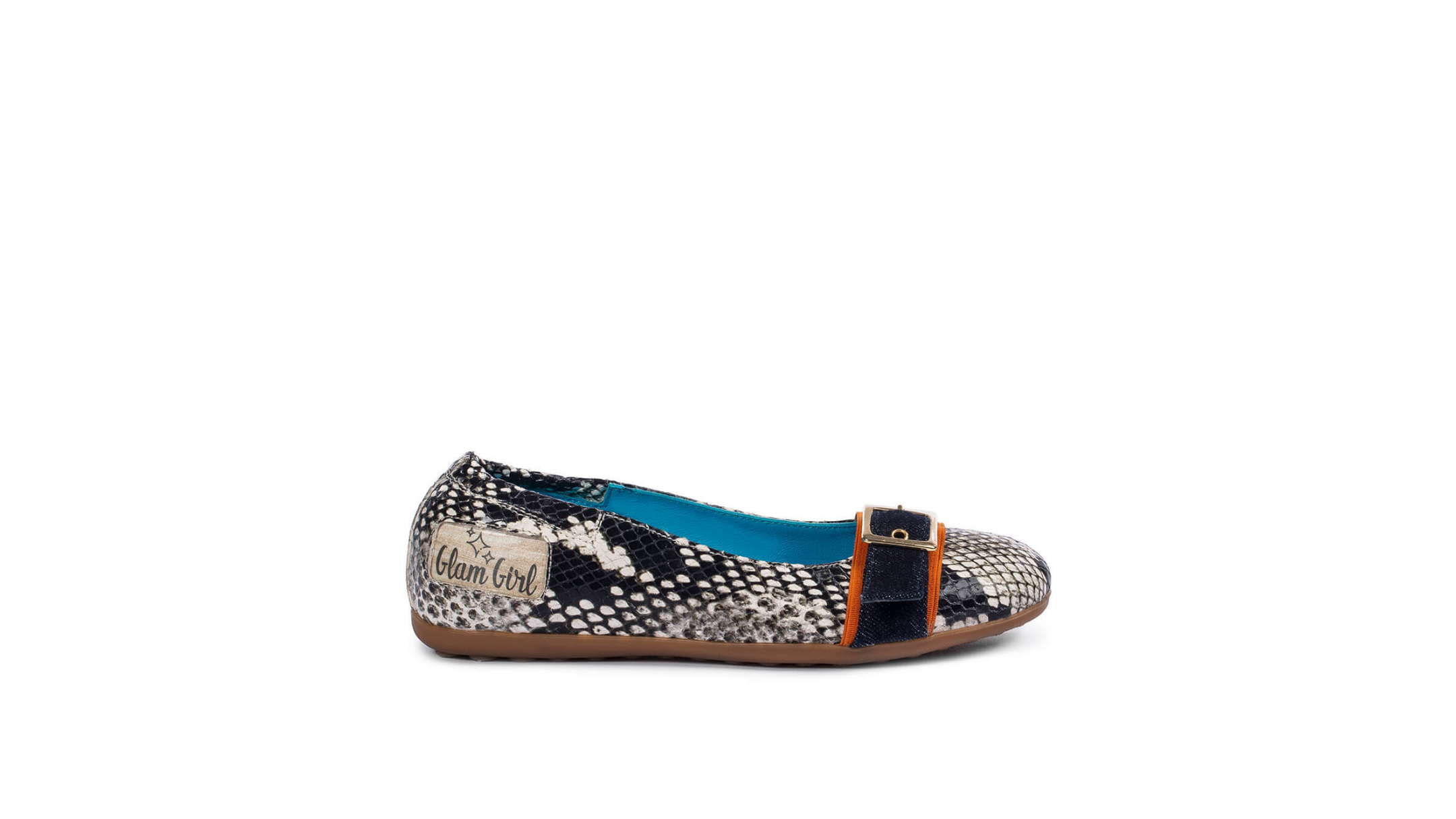 This ballerina shoe is the perfect choice for budding fashion-addicts. It is made from fine, smooth Italian leather with a slip-on style and tapered silhouette. The slightly pointy toe is crossed by a decorative strap with contrast borders and silver-tone squared buckle. The lightly padded heel counter and insole gently protect the foot, while the low wedge provides support and easy stepping. The window box logo is inserted on the external side for immediate brand recognition.