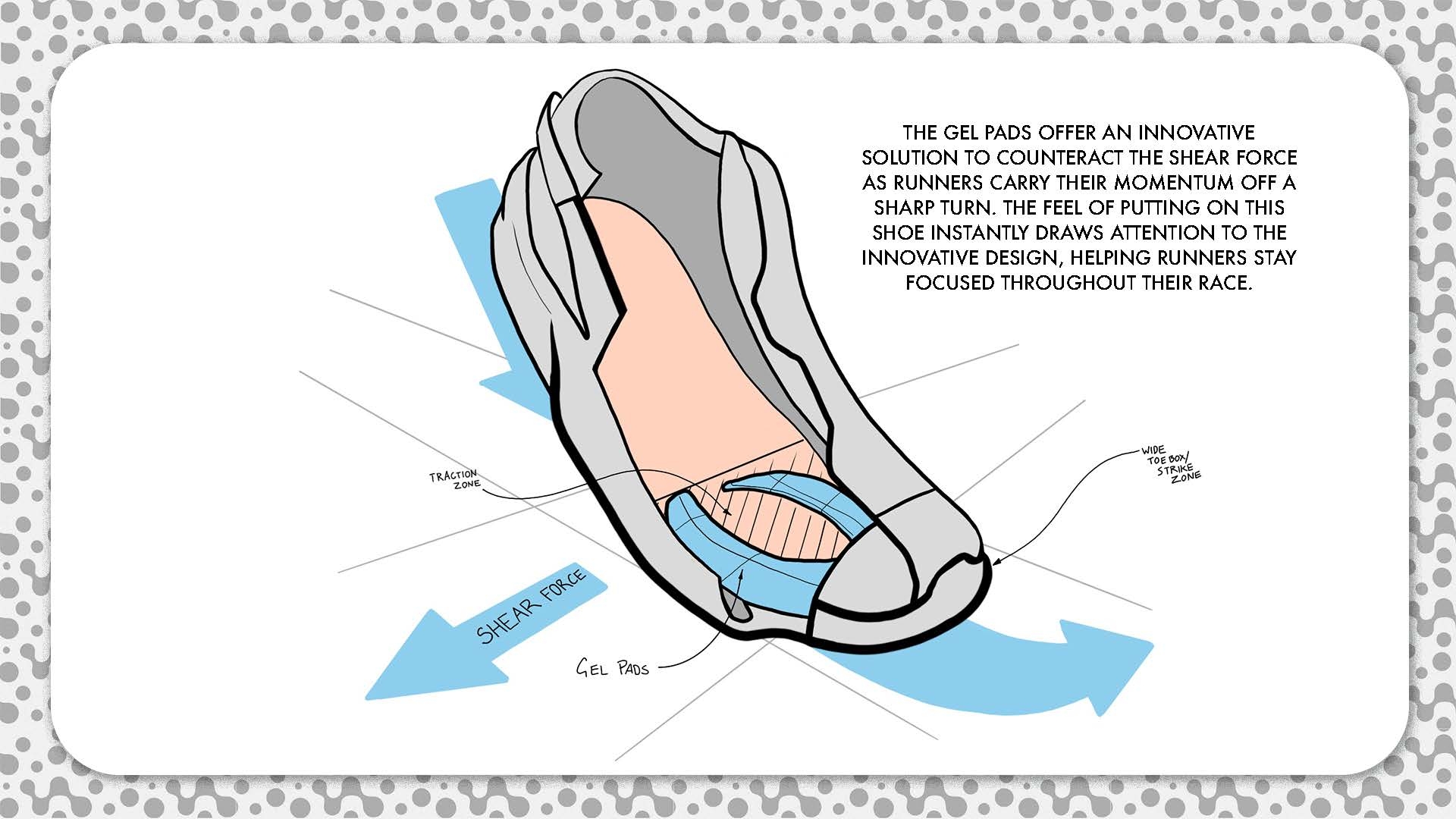 The Nike Shear Force is a performance shoe engineered to give racers uncompromising speed and stability, especially through sharp turns on slick surfaces. Featuring lightweight lattice structures, aerodynamic air intake vents, gel pads to counteract shear forces, and specialized tread for grip, it’s designed so runners never have to choose between agility and top-end speed.