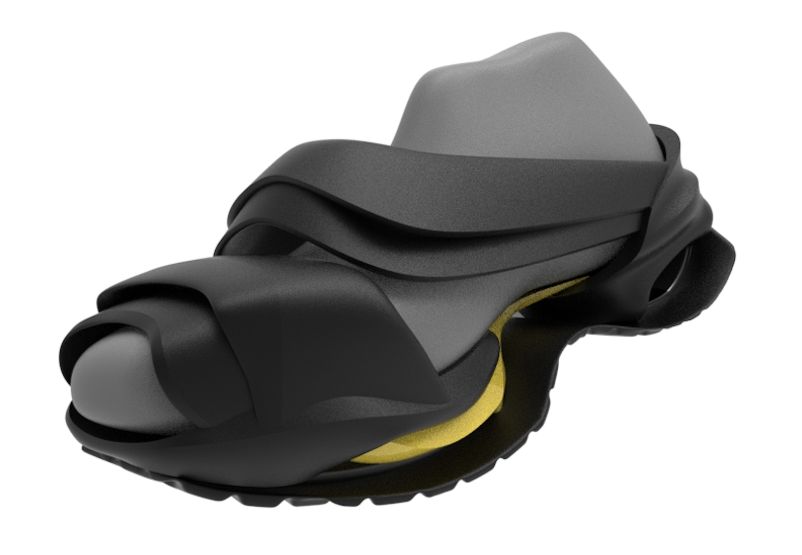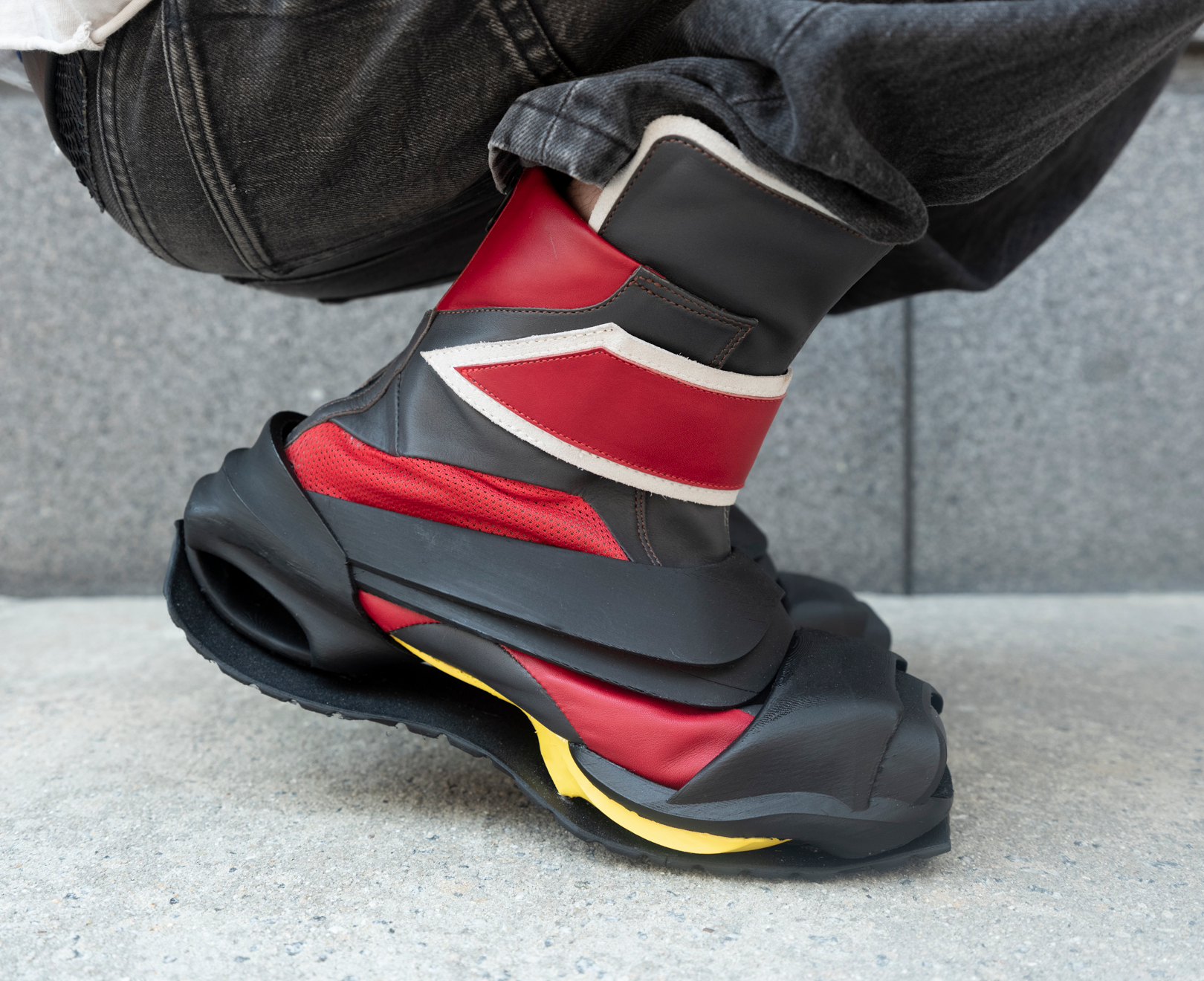Venturi is an androgynous sneaker boot at the intersection of fashion, sport, and lifestyle. Made from premium Italian leather, it incorporates a technical midsole with carbon plates engineered for balance and responsive control. Automotive-inspired, its aerodynamic form features a static louver system on the comb and toe cap of the shoe, allowing for airflow while maintaining water control. Venturi redefines leather footwear with performance-driven comfort and thermal control.