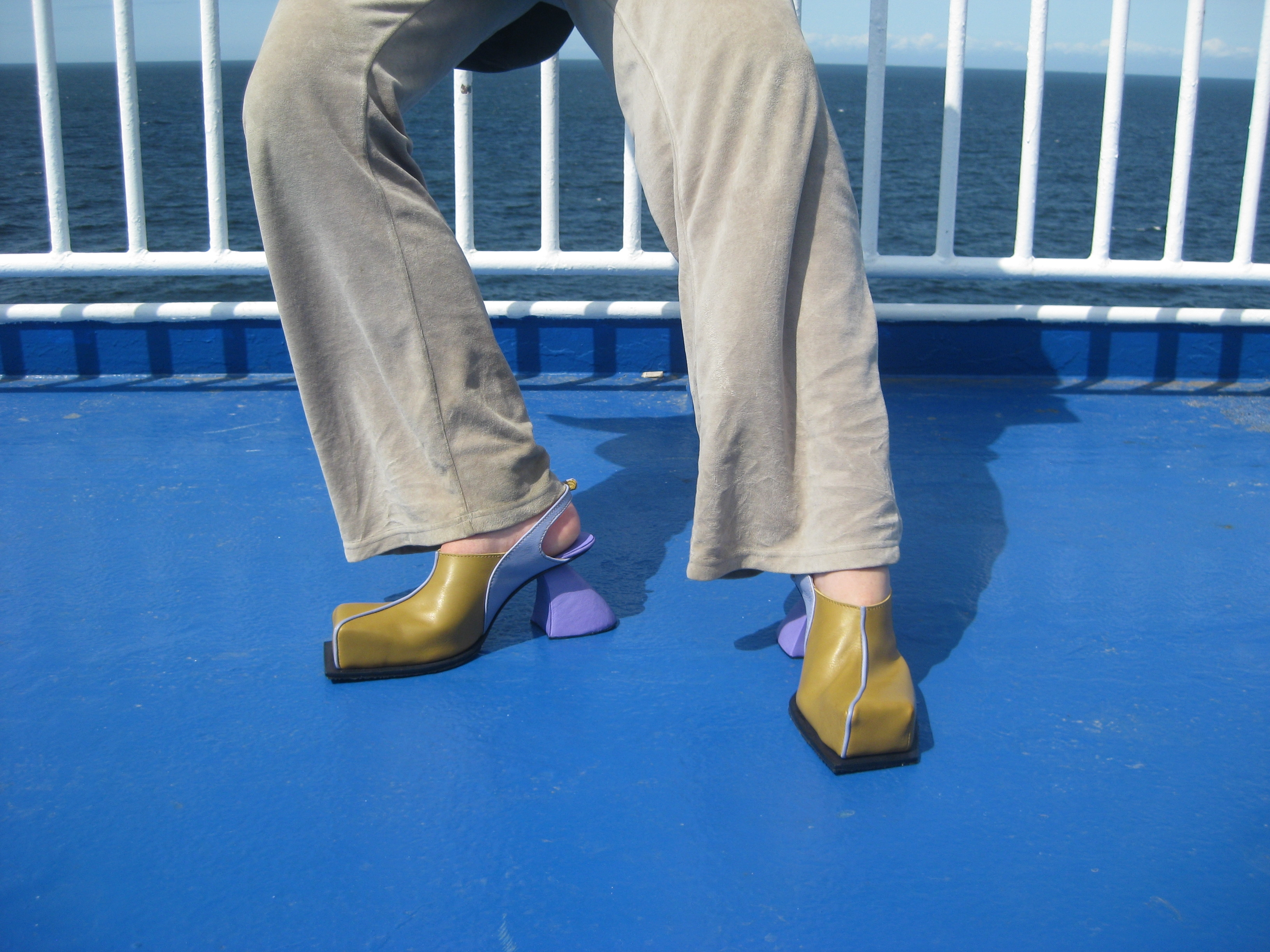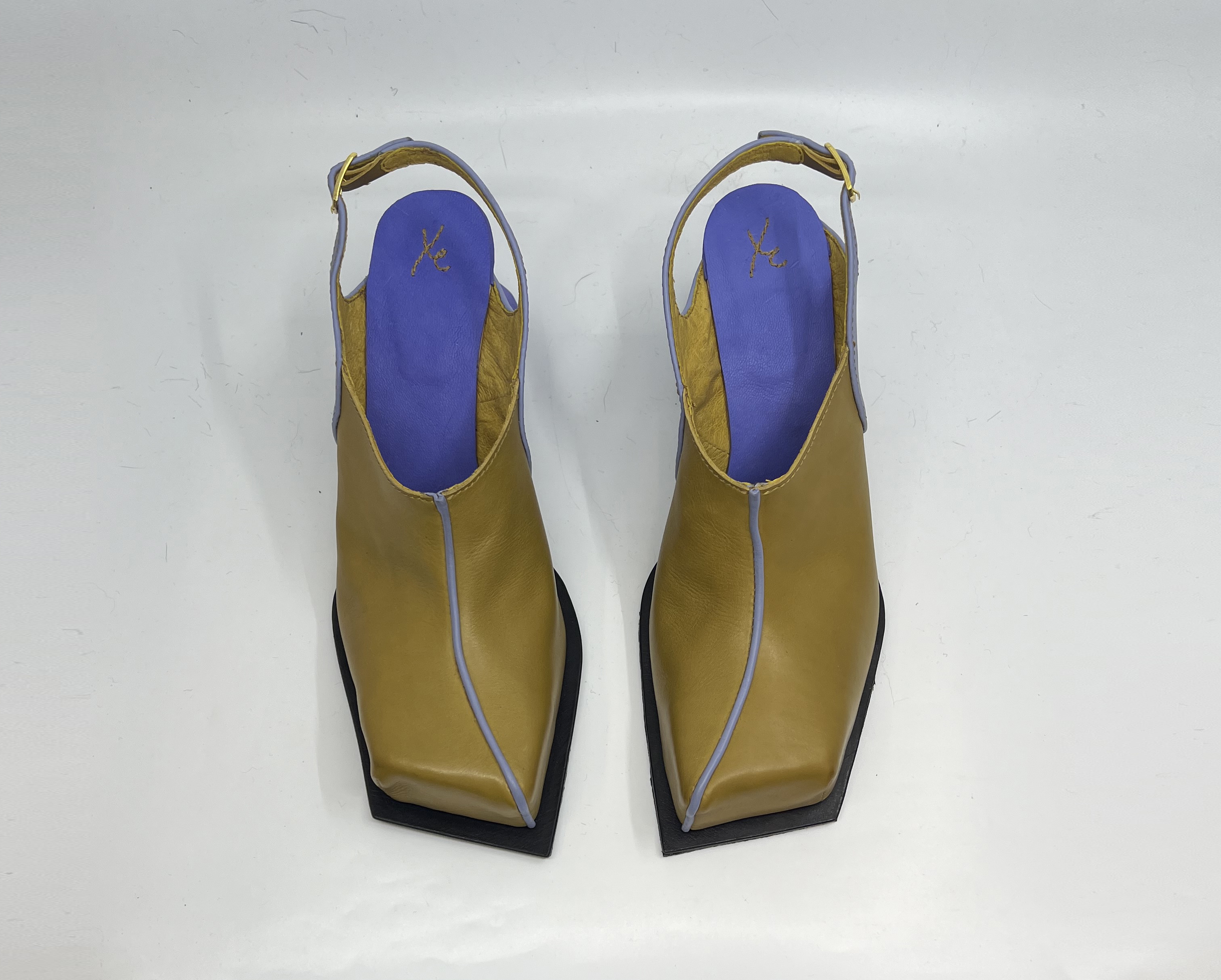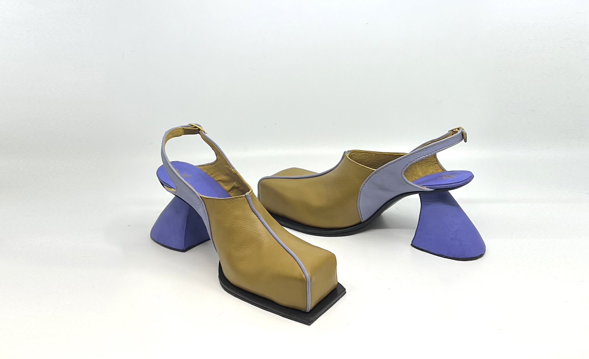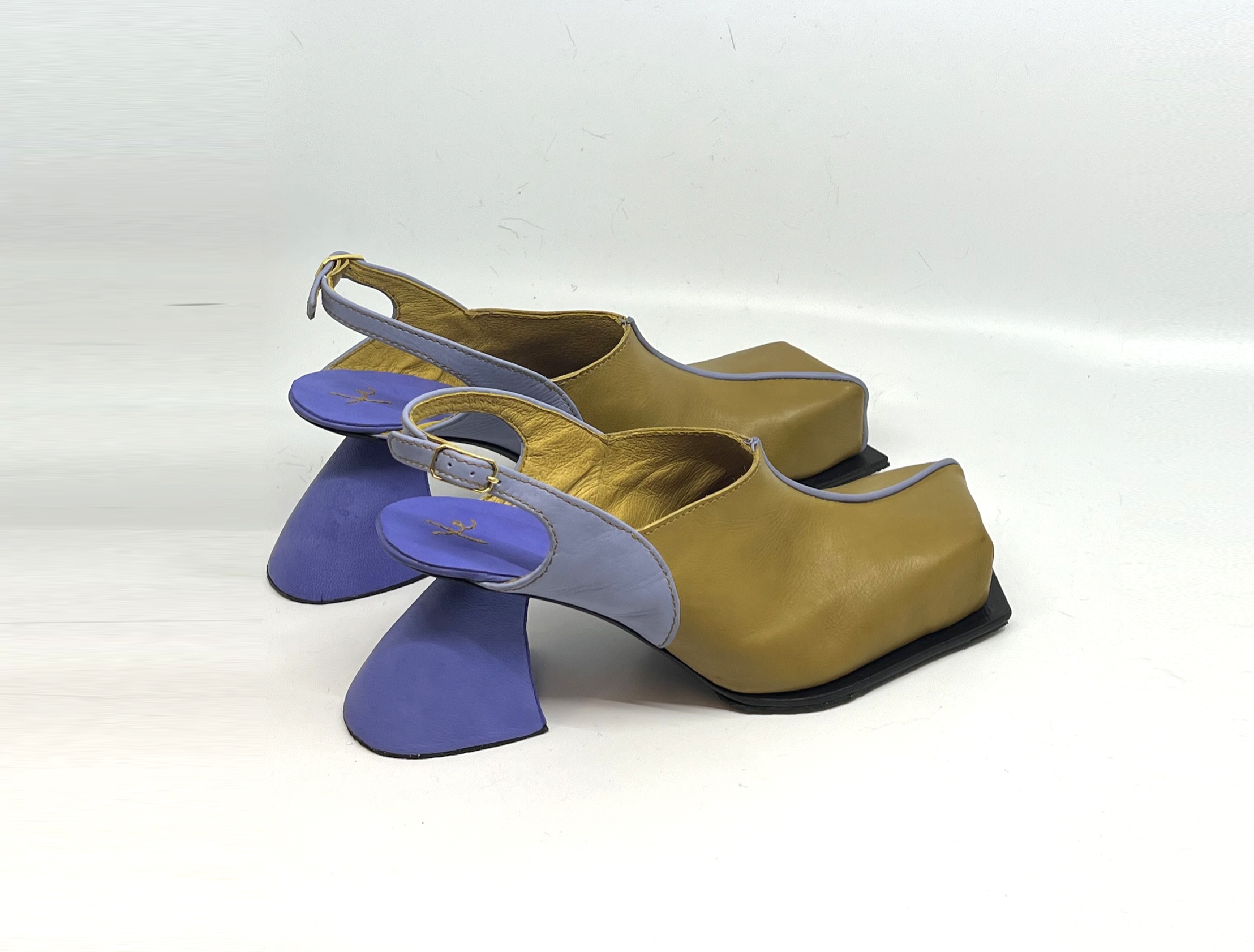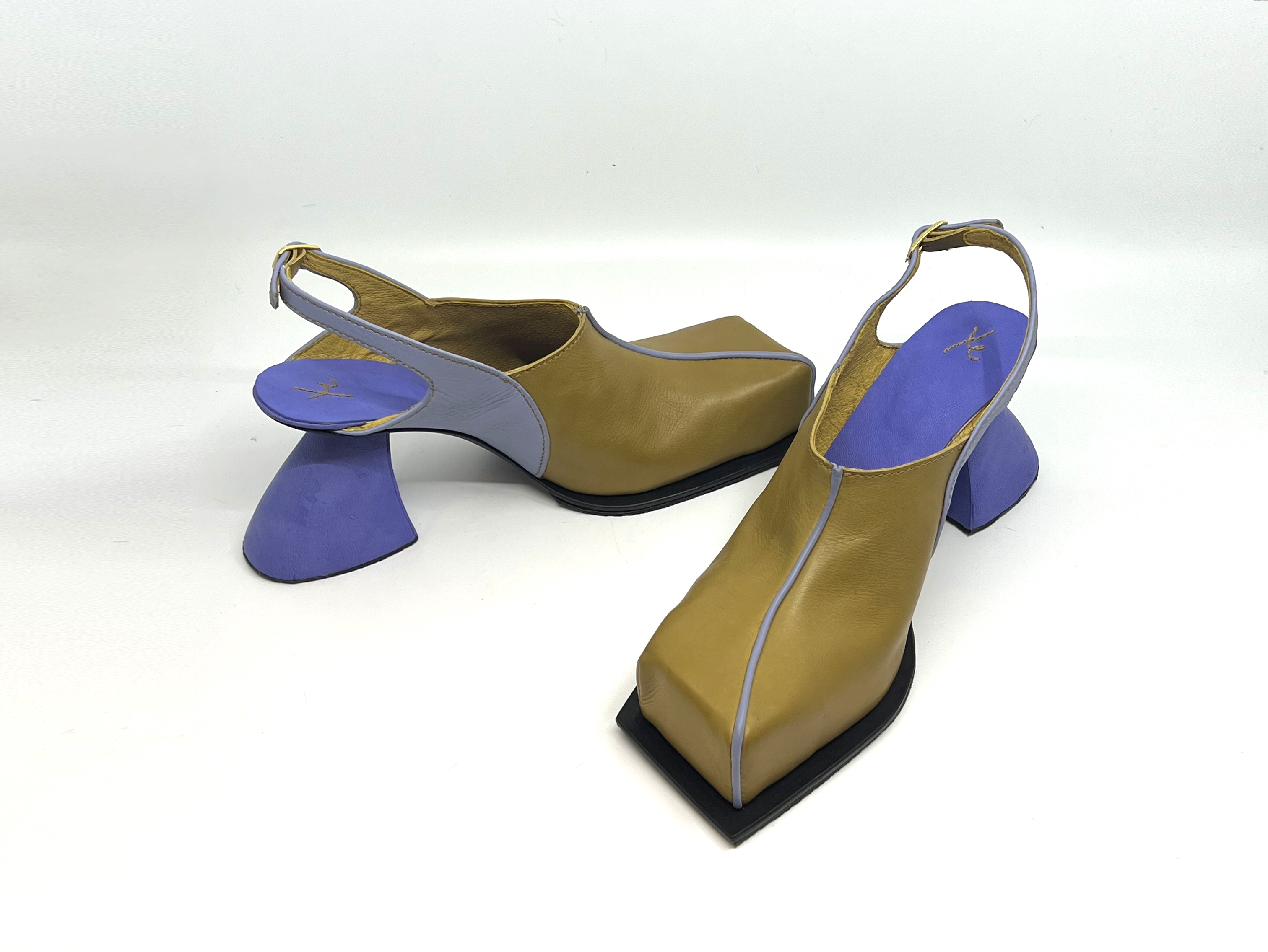 A chunky mule with sporty roots and Bauhaus dreams. This conceptual mule merges Bauhaus geometry and colours with retro sportswear aesthetics through a humorous, sculptural lens. Inspired by 1970s running shoes, especially vintage Puma. The silhouette is reimagined as a bold, chunky slip on with primary colors and clean lines. The heel, upcycled from a donated leather boot and flipped upside down, subverts traditional construction. The design plays with contrasts, sporty vs. sculptural—offering satirical commentary on nostalgia, sustainability, and fashion norms.