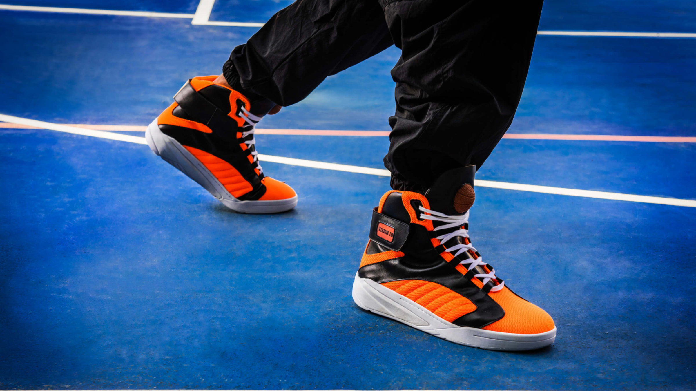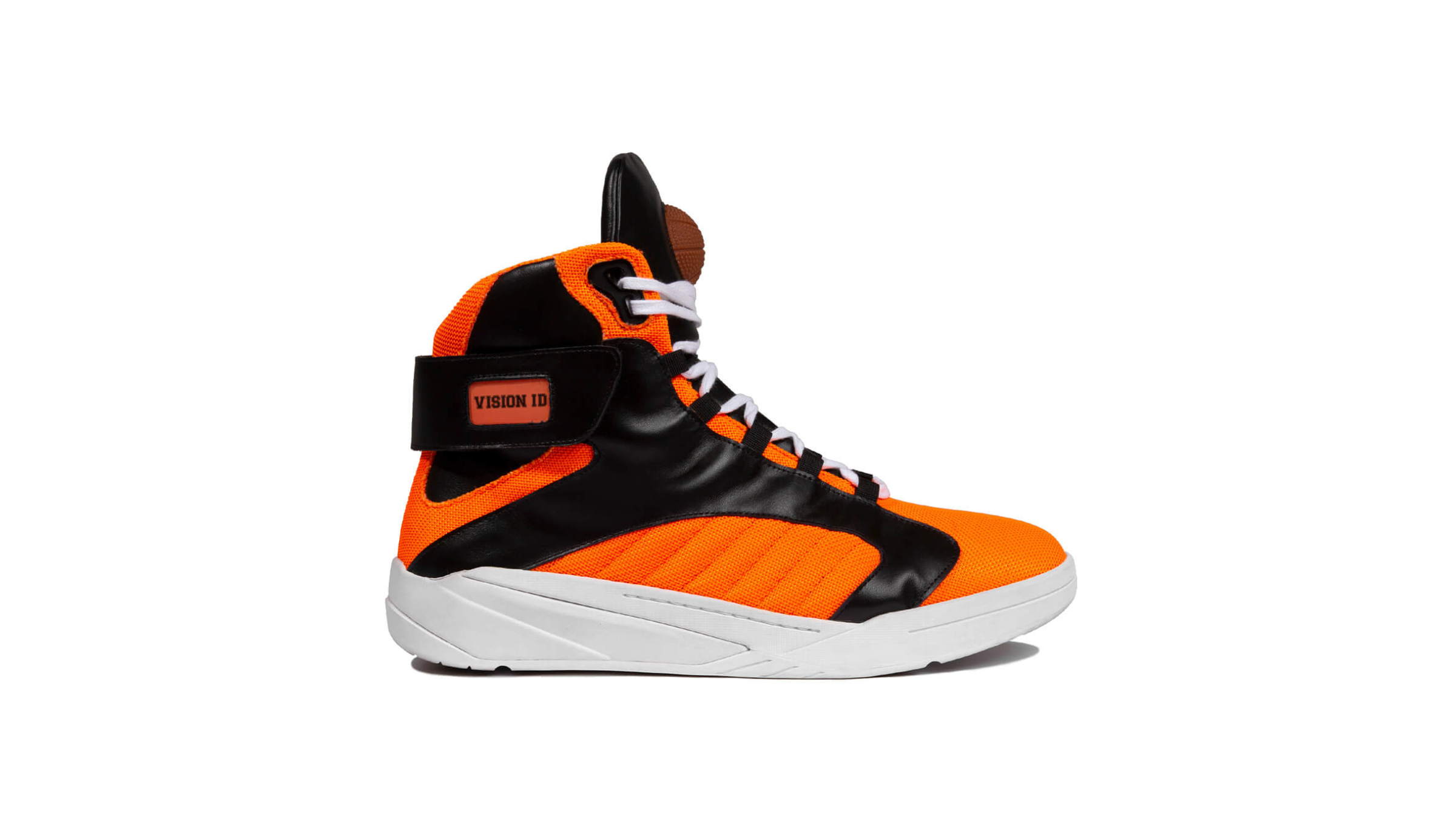 Vision Id comes straight from the basketball archives. According to today's trend, this sneaker reinterprets the court style, with a strap around the ankle to offer stability and a carved sole perfect to face any terrain, whether it is play or city. The bold colors and the rubber basketball on the tongue create a very unique identity around the shoe. The branding Tim made on the box and logo is also remarkable. An amazing piece for sports lovers and also for the urban crowd.