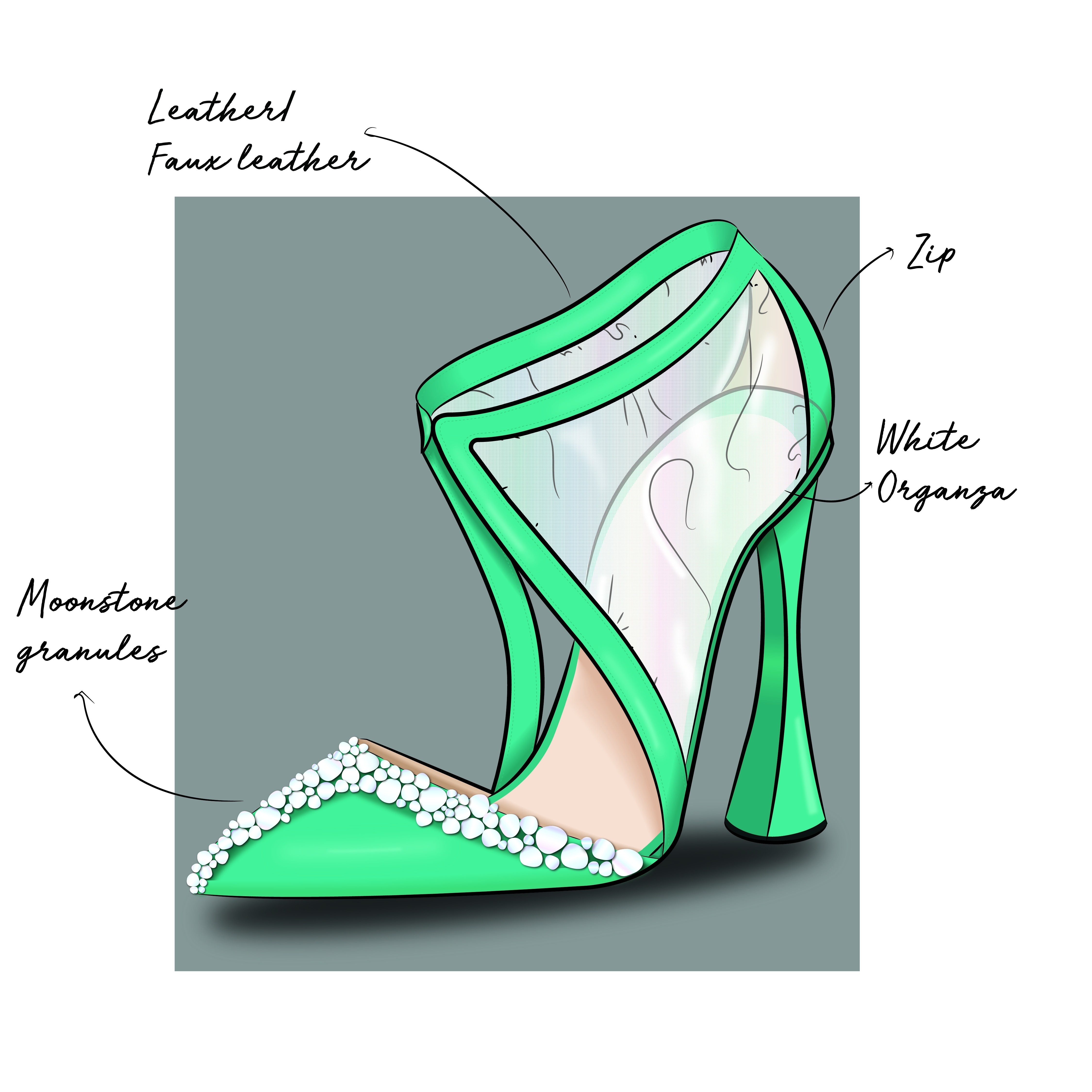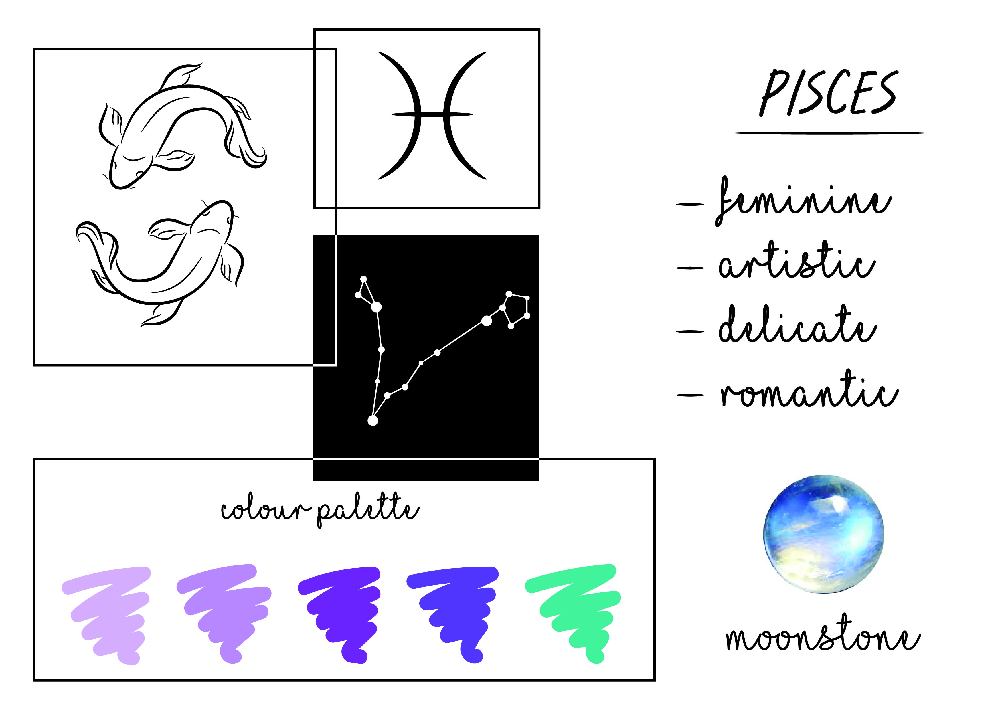 This is a design made for pisces according to their zodiac characteristics. It is made after a detailed study of their personality, style sense and all the important things like favourable colours and stones. The final design consists fabrics like leather and organza with moonstone.