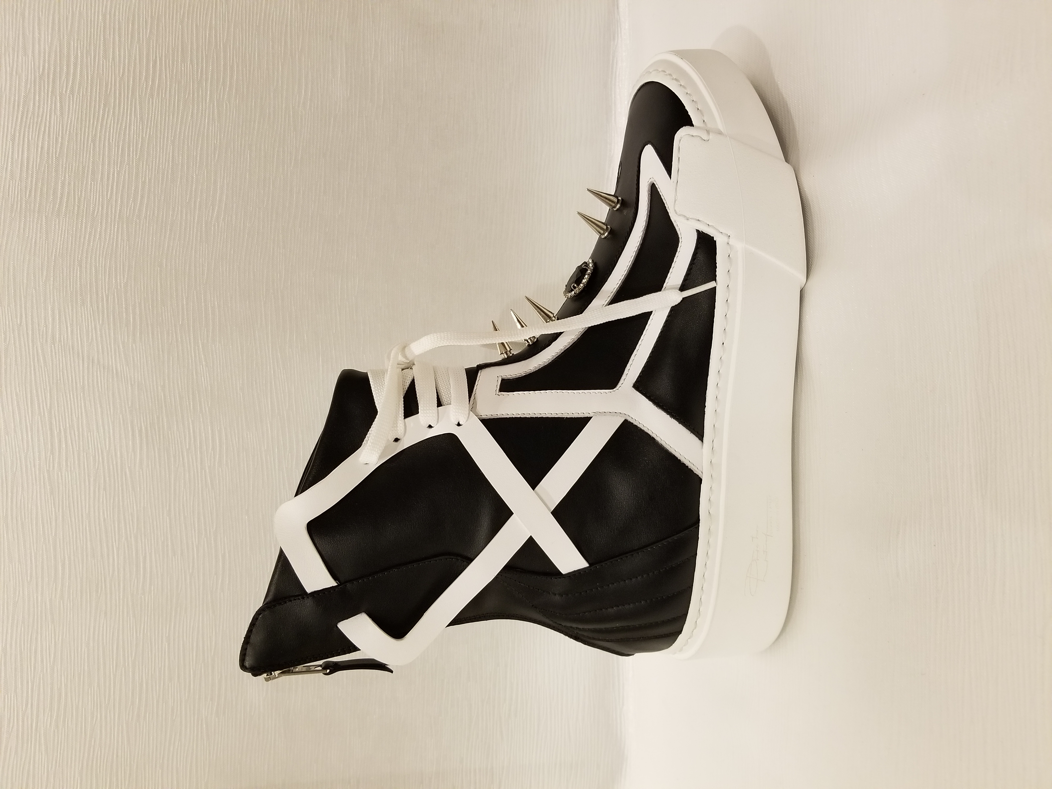 Edgy/sporty Footwear crafted from the finest full grain grade "A" calfskin, with use of quality gemstones and selected metal attachments.