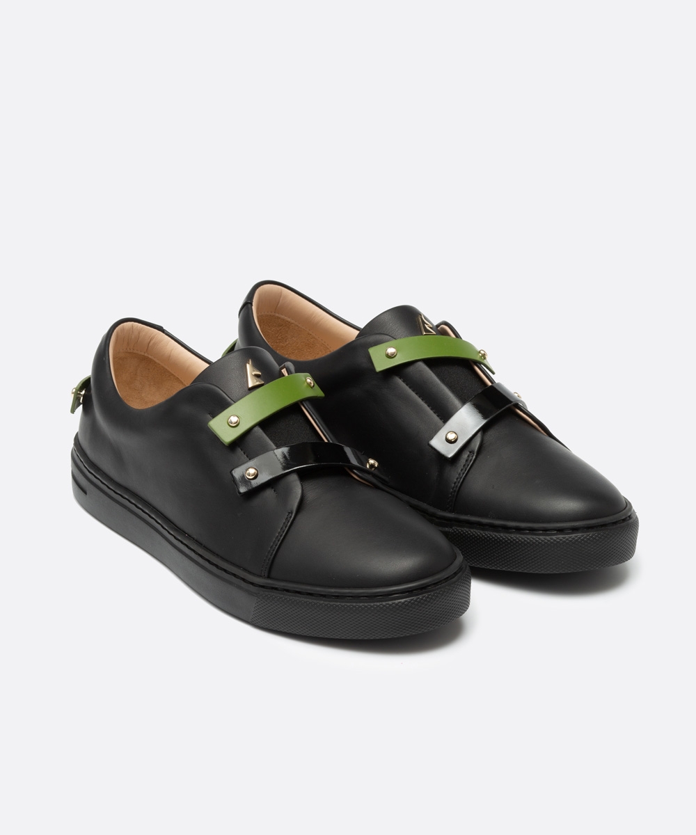 The slip on sneaker features an innovative timeless design that is minimal, comfortable and light. It also features 8 premium leather straps that can be customized with additional colored strap packs available for purchase in a variety of colors.