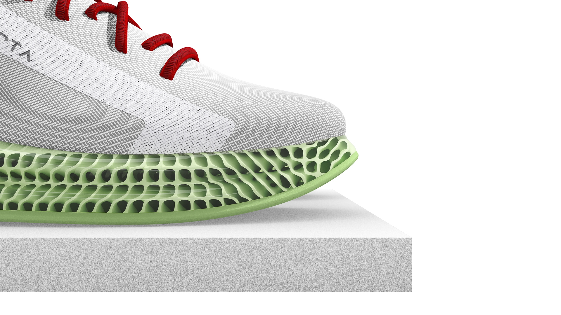The midsole material is a 3D printable elastomeric polyurethane which is obtained through the process of synthesis with oxygen (Digital Light Synthesis - DLS). This material has extremely resilient properties and is able to absorb and return energy in a similar way to conventional EVA used for the production of running midsoles.