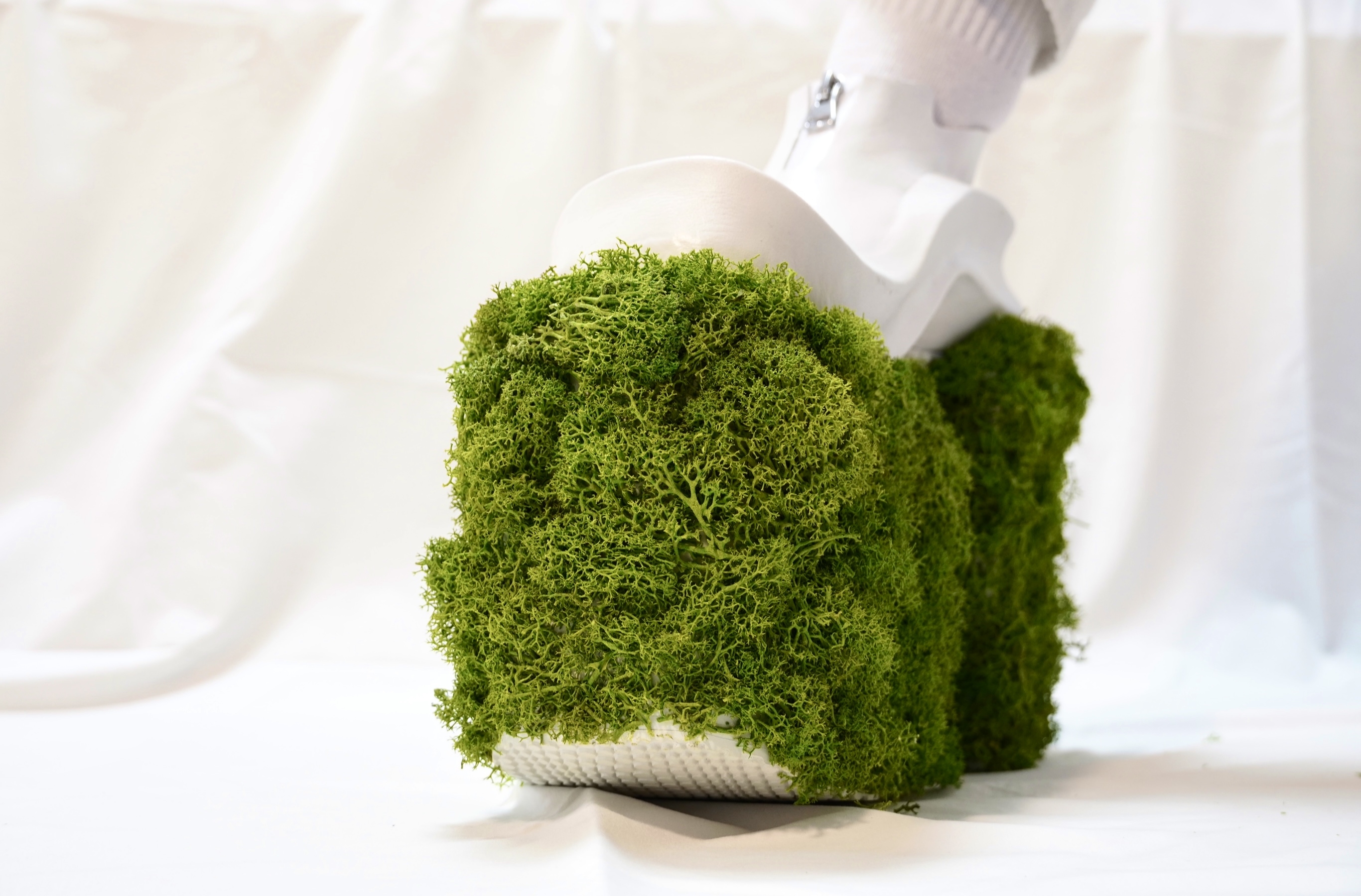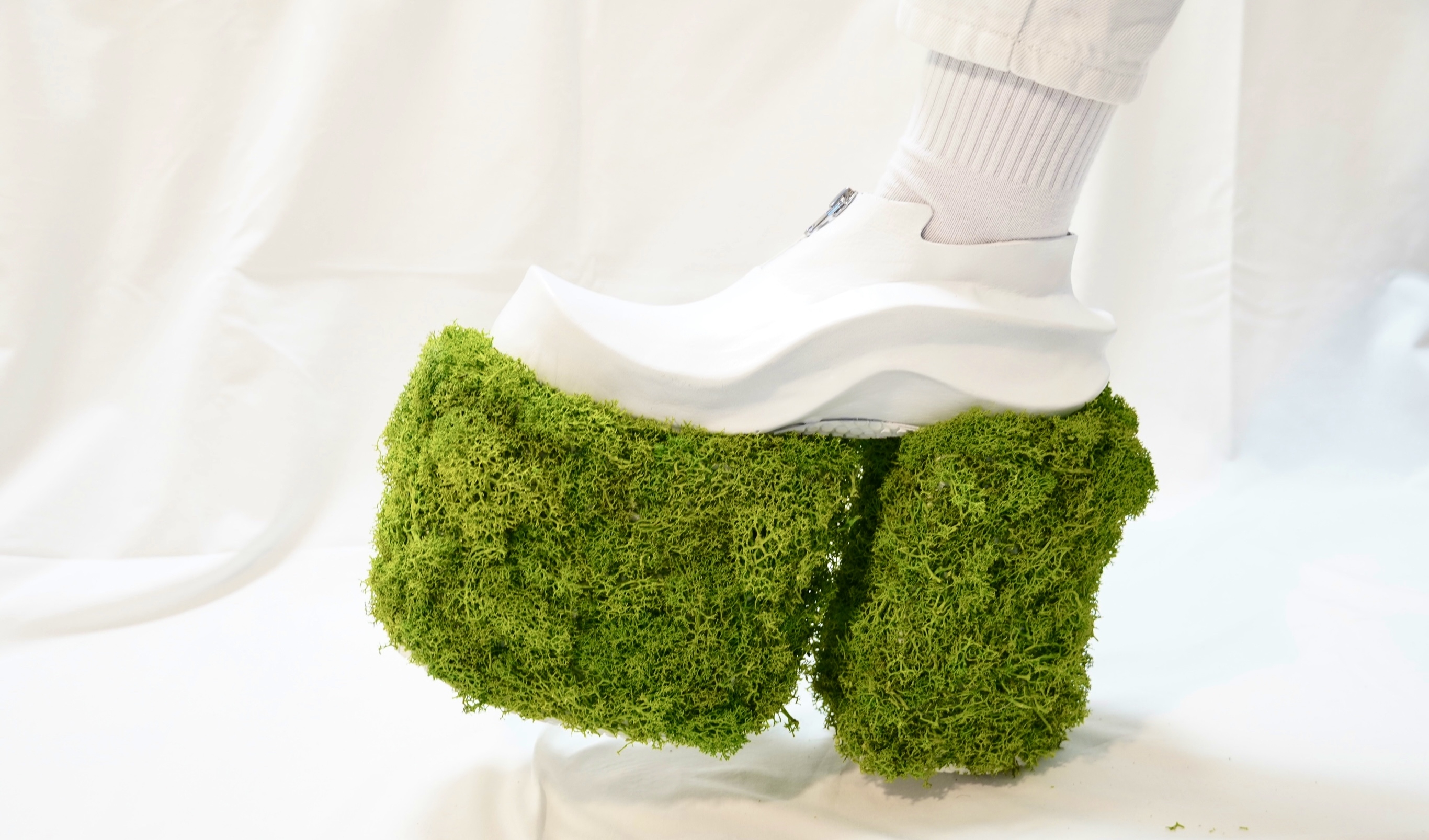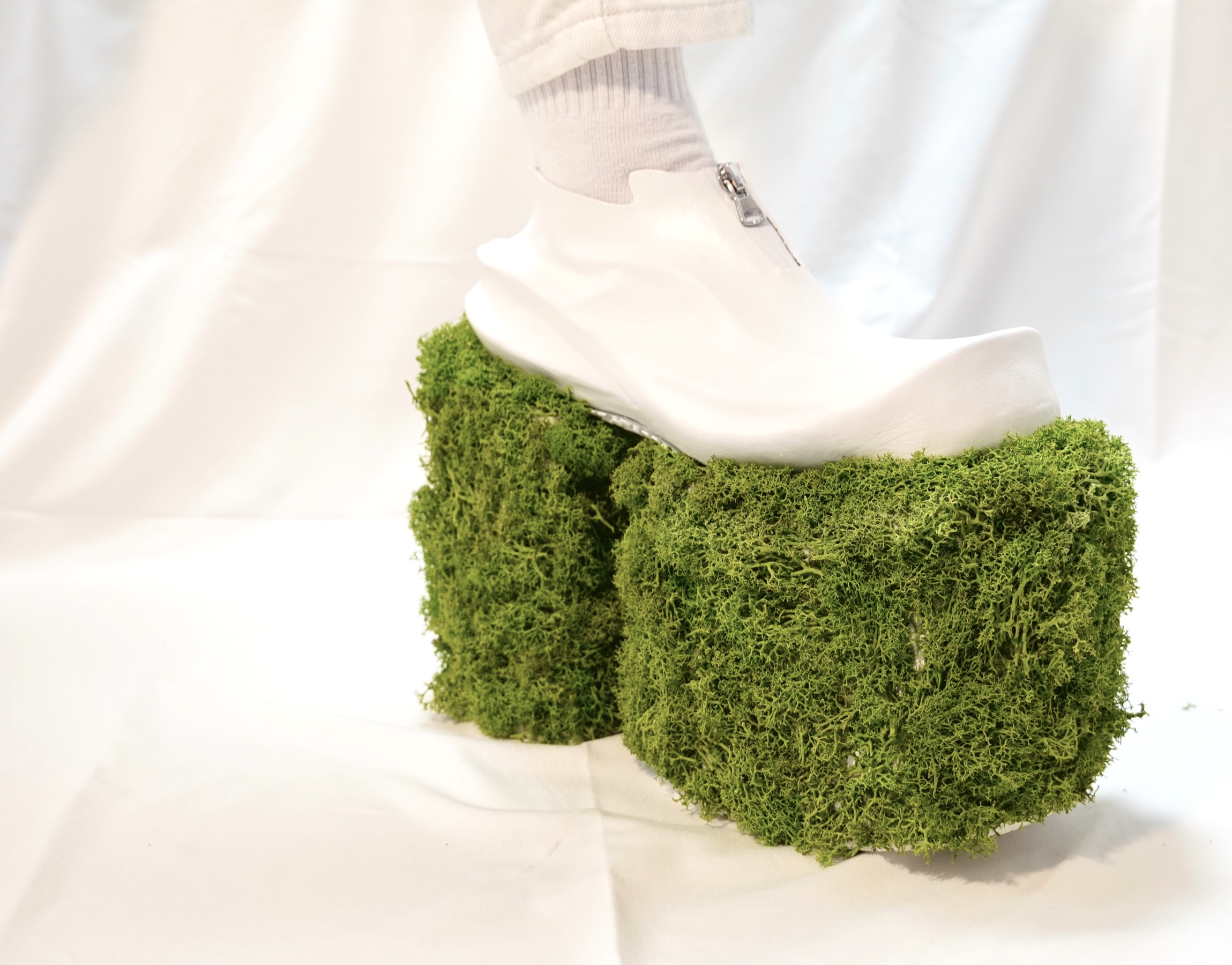 A plateau Boot that stands for the difference between chaos and order. But it refers to this subject in a mathematical matter. Combining clear and defines shapes and forms with chaotic shapes (fractals) in this case moos.