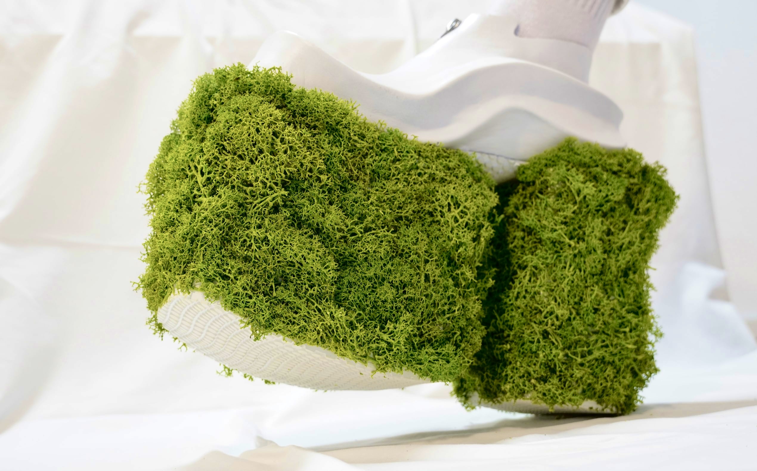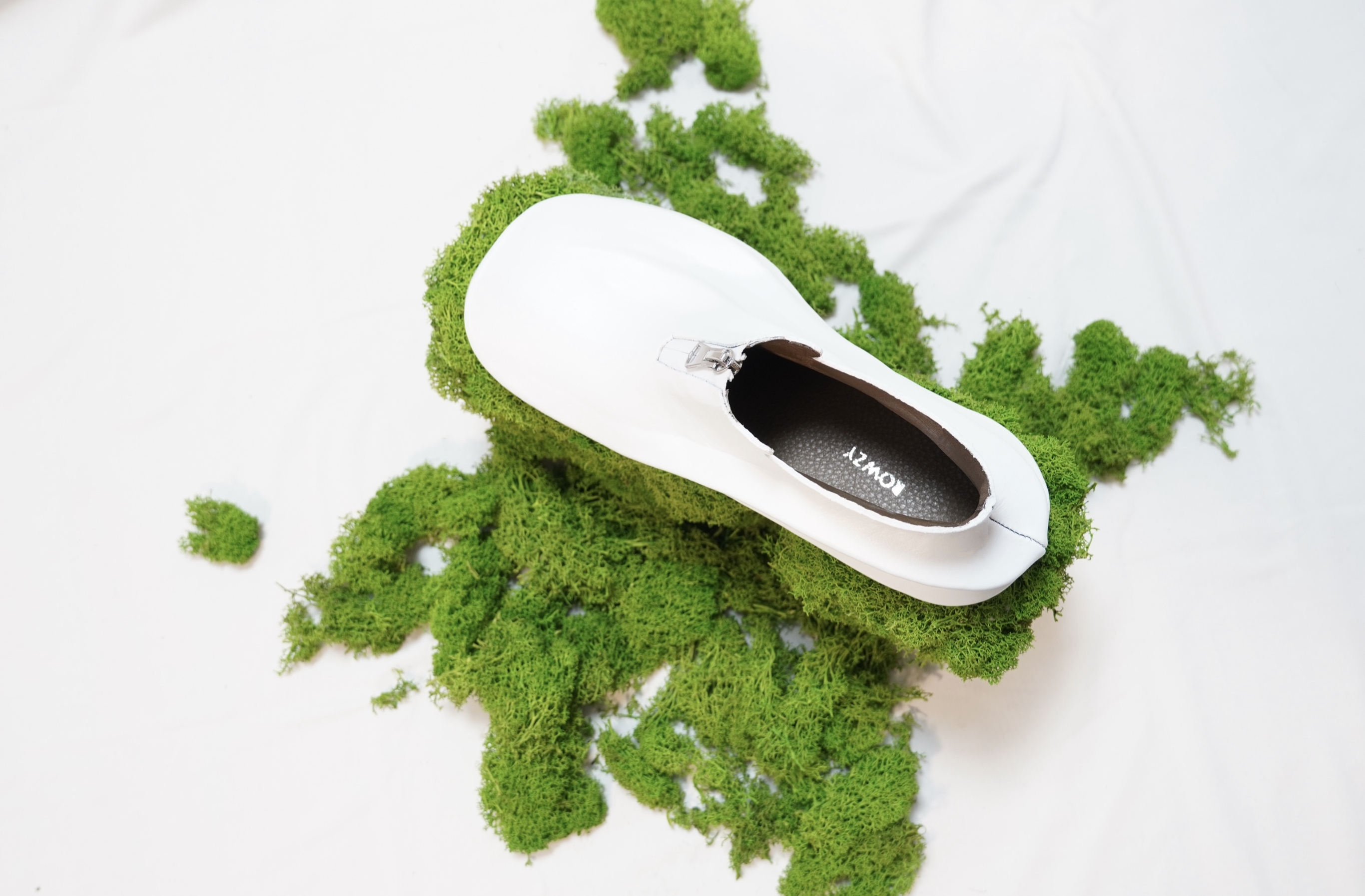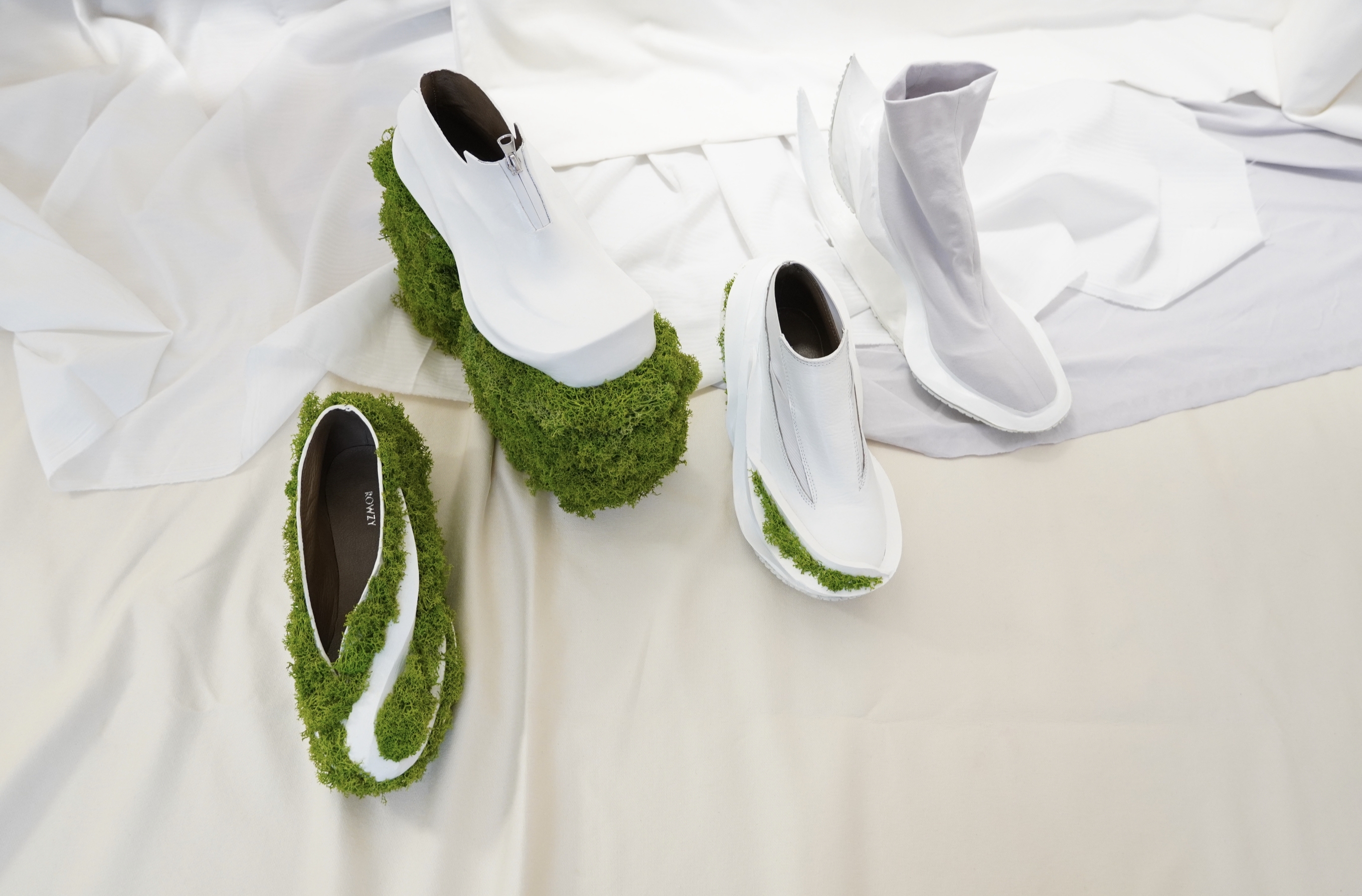 A plateau Boot that stands for the difference between chaos and order. But it refers to this subject in a mathematical matter. Combining clear and defines shapes and forms with chaotic shapes (fractals) in this case moos.