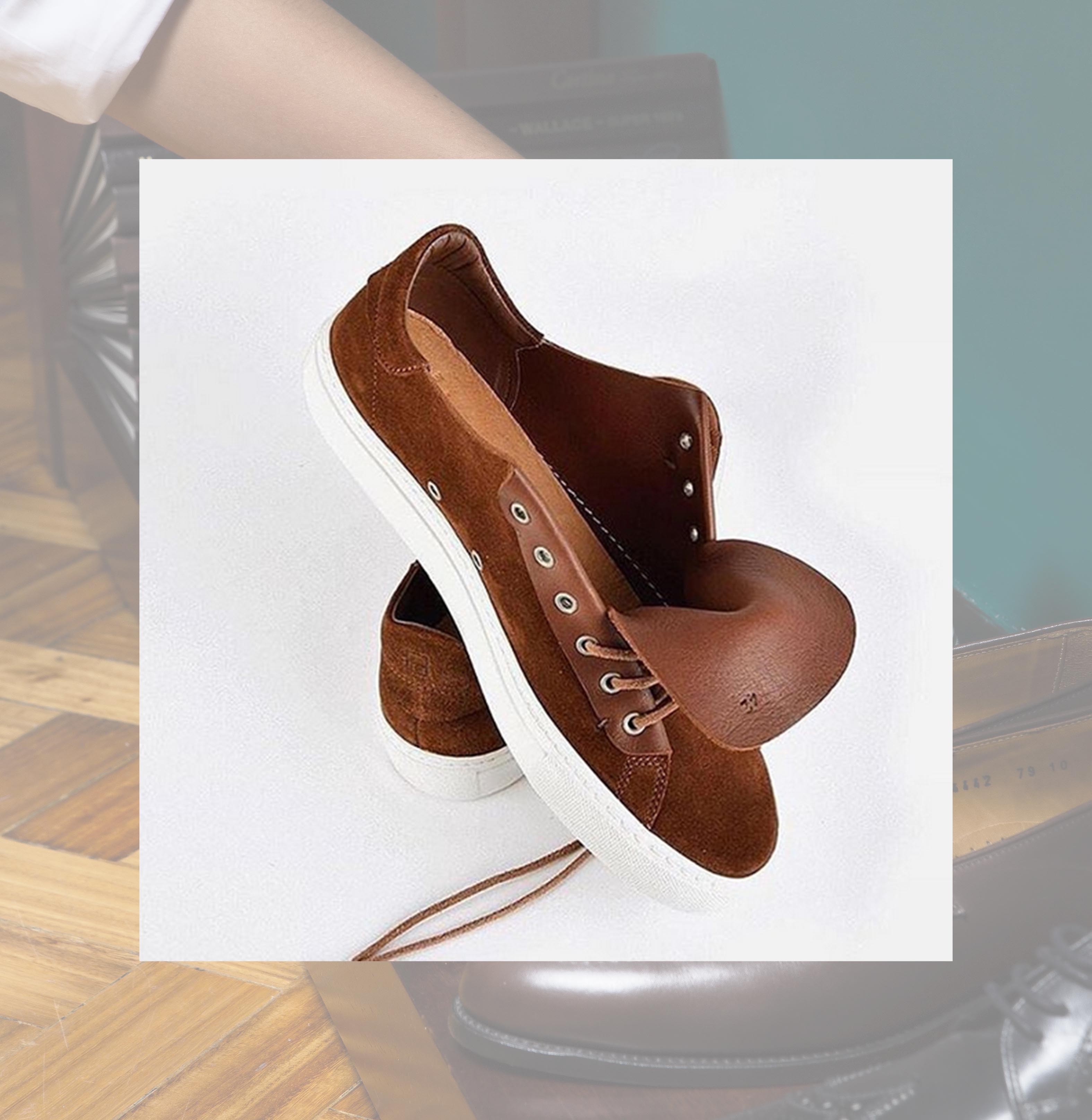 Line made with premium double face leather from Sciarada Italy named Castoro. What make this different is the loop on the eyestay witch can be a technical detail to secure the counter. Can be used with the grain side facing towards the interior of the product, thus avoiding the need to employ lining. Leather/Latex footbed for comfort. Strobel construction for flexibility and rubber outsole for great quality and durability creating a timeless look with premium quality.