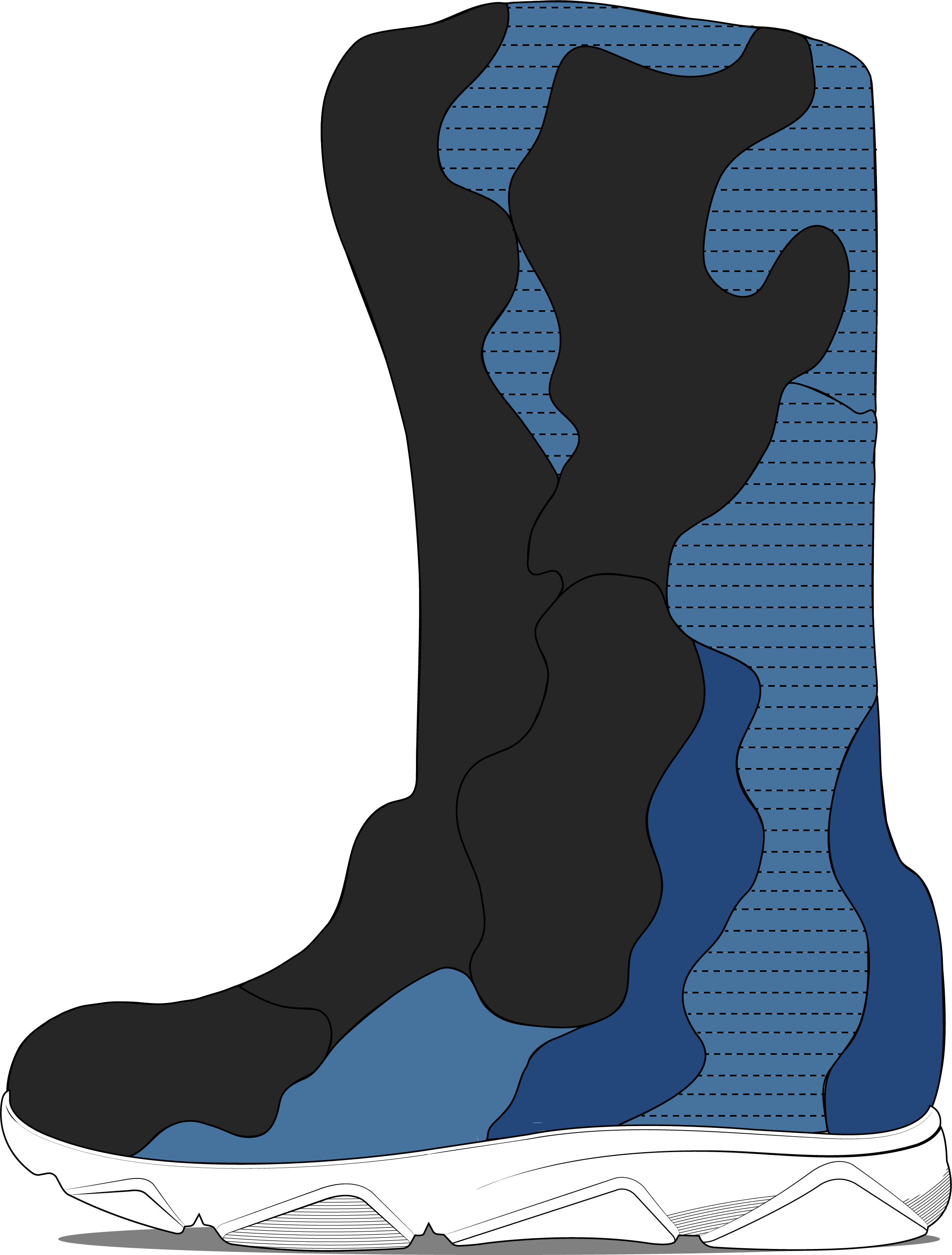 This sneaker was developed based on motocross boots and their ability to provide optimal protection for your feet and lower legs. The concept behind this design was to craft footwear that safeguards the critical impact areas in case of a fall during potentially risky activities. It caters to individuals seeking to engage in adventure sports without needing costly boots, offering a versatile shoe style suitable for practice sessions and post-activity outings.
