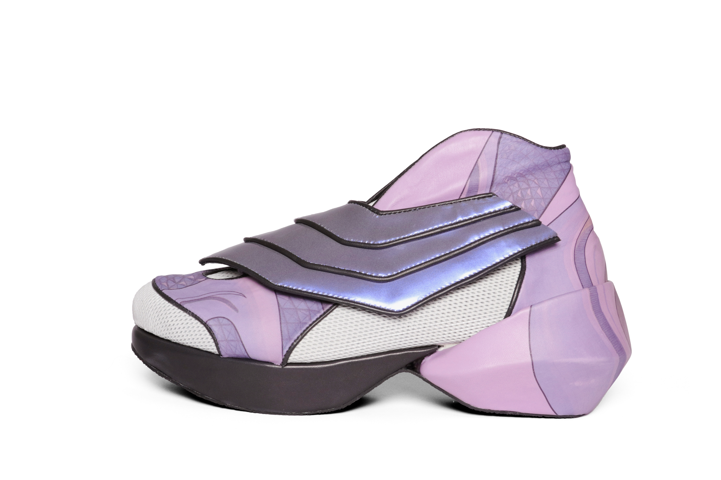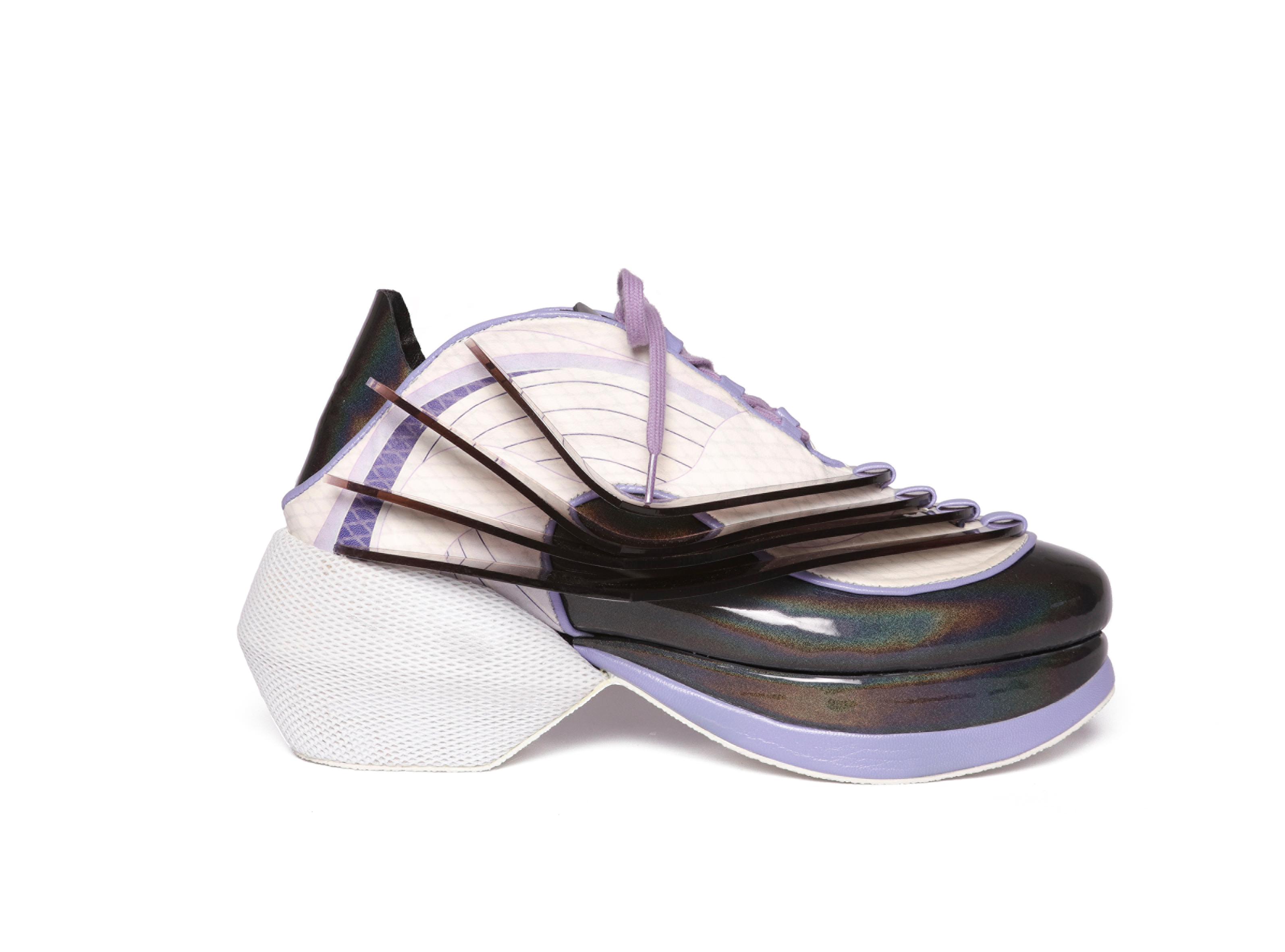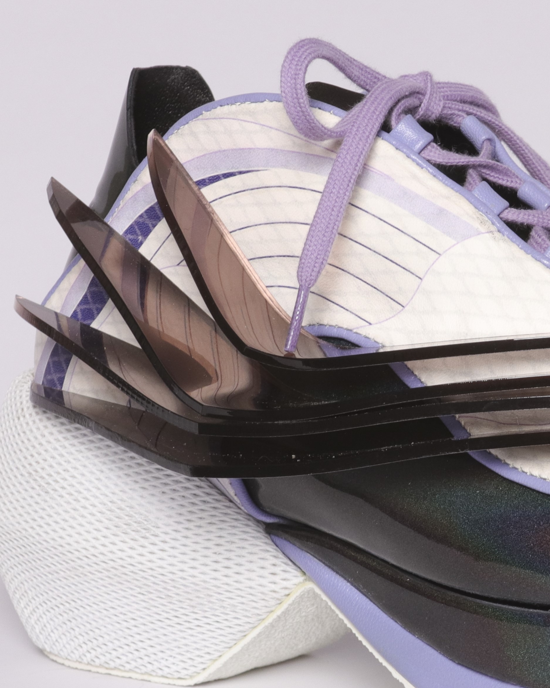 This shoe collection offers an array of eight designs: four – more extreme – artistic footwear designs that almost literally capture the spirit of the buildings which are then each translated into four wearable, high-fashion shoes. The collection consists of six pairs for women and two pairs of men sneakers.