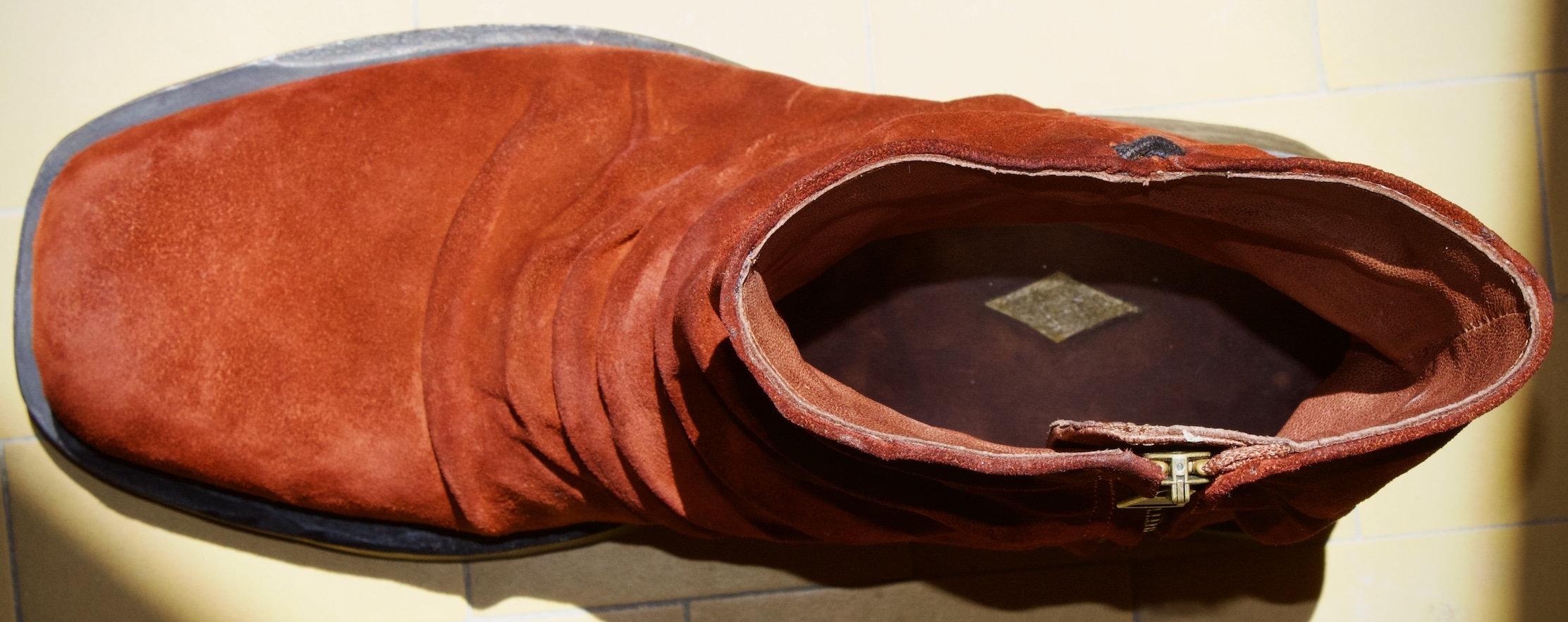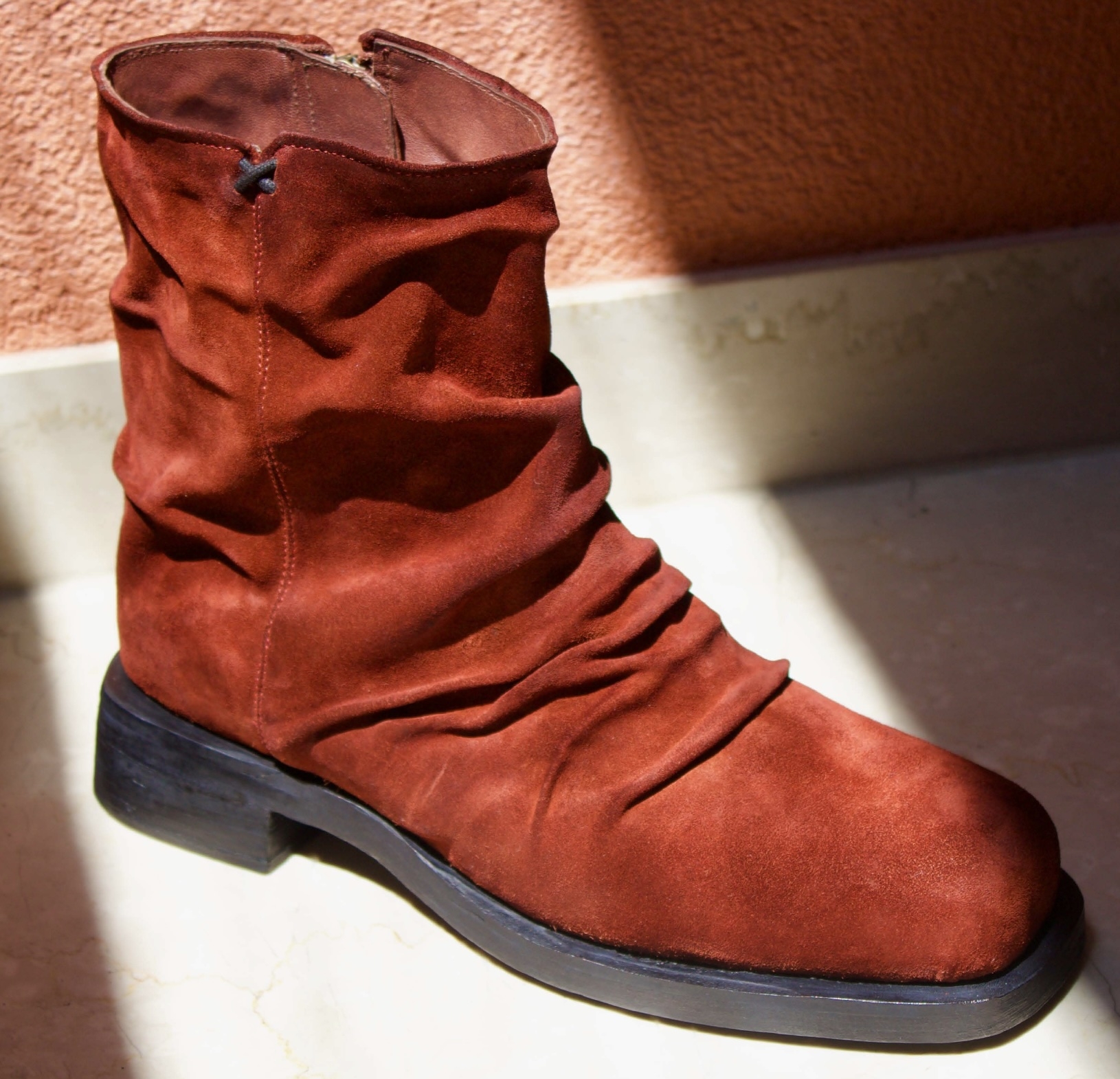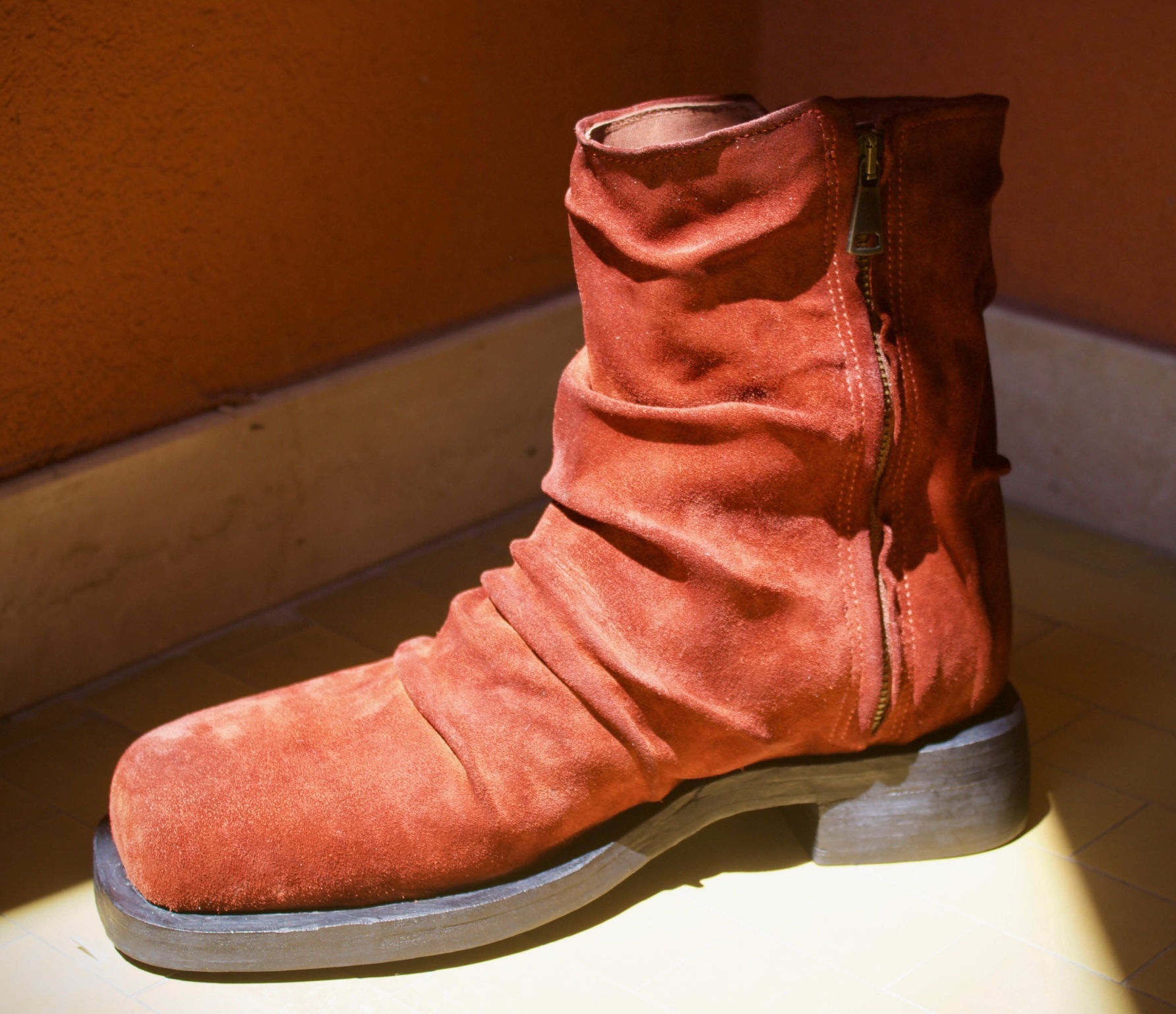 A premium design made with an extreme attention to detail. Each pair is its own due to the artisanal folds that are hand placed on each shoe. This boot gives off a vintage aesthetic and is bold with rock’n’roll attitude. Made with a fine Italian suede upper and leather lining, as well as, a handmade stacked leather outsole. This boot is intended for those who want to make a statement.