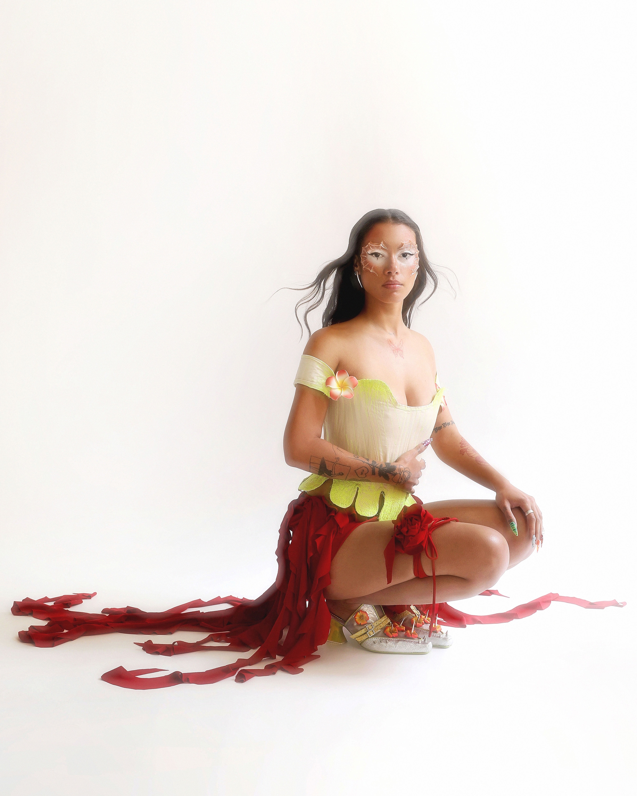 Materials: leather upper and lining, rhinestone buckles, handcrafted vegtan leather flowers, spike stud, veg tan leather sole, recycled content rubber heel topper, pine heel