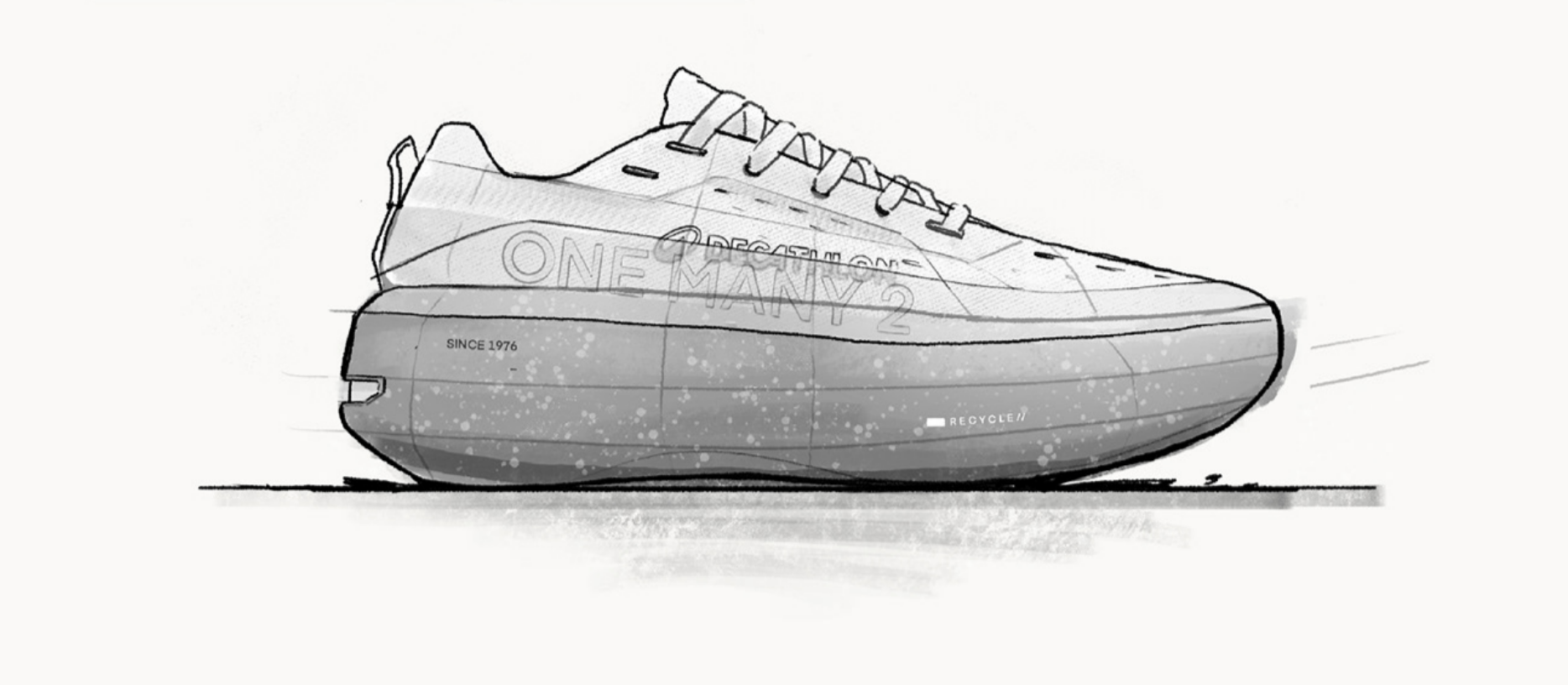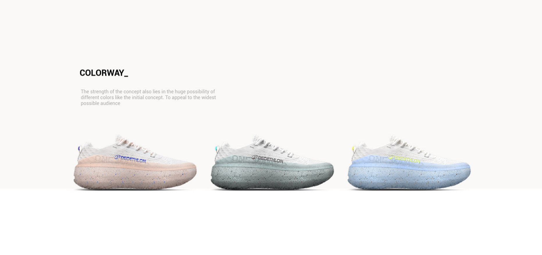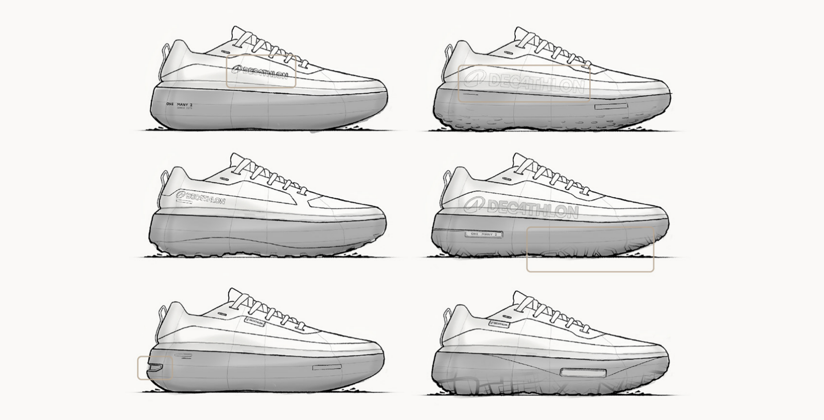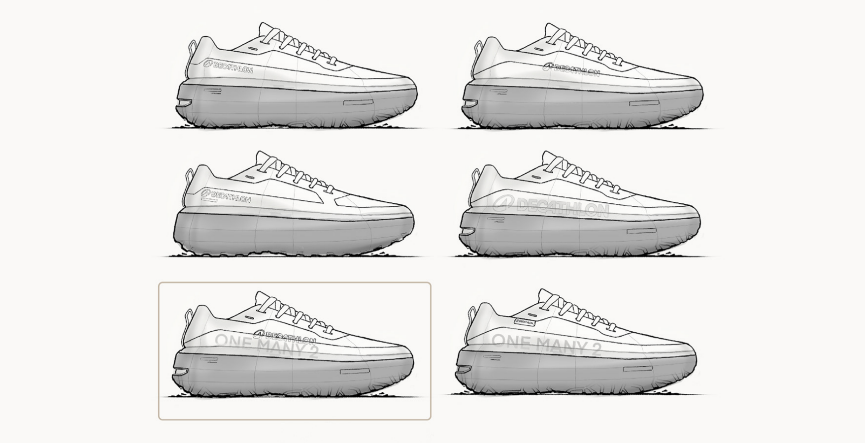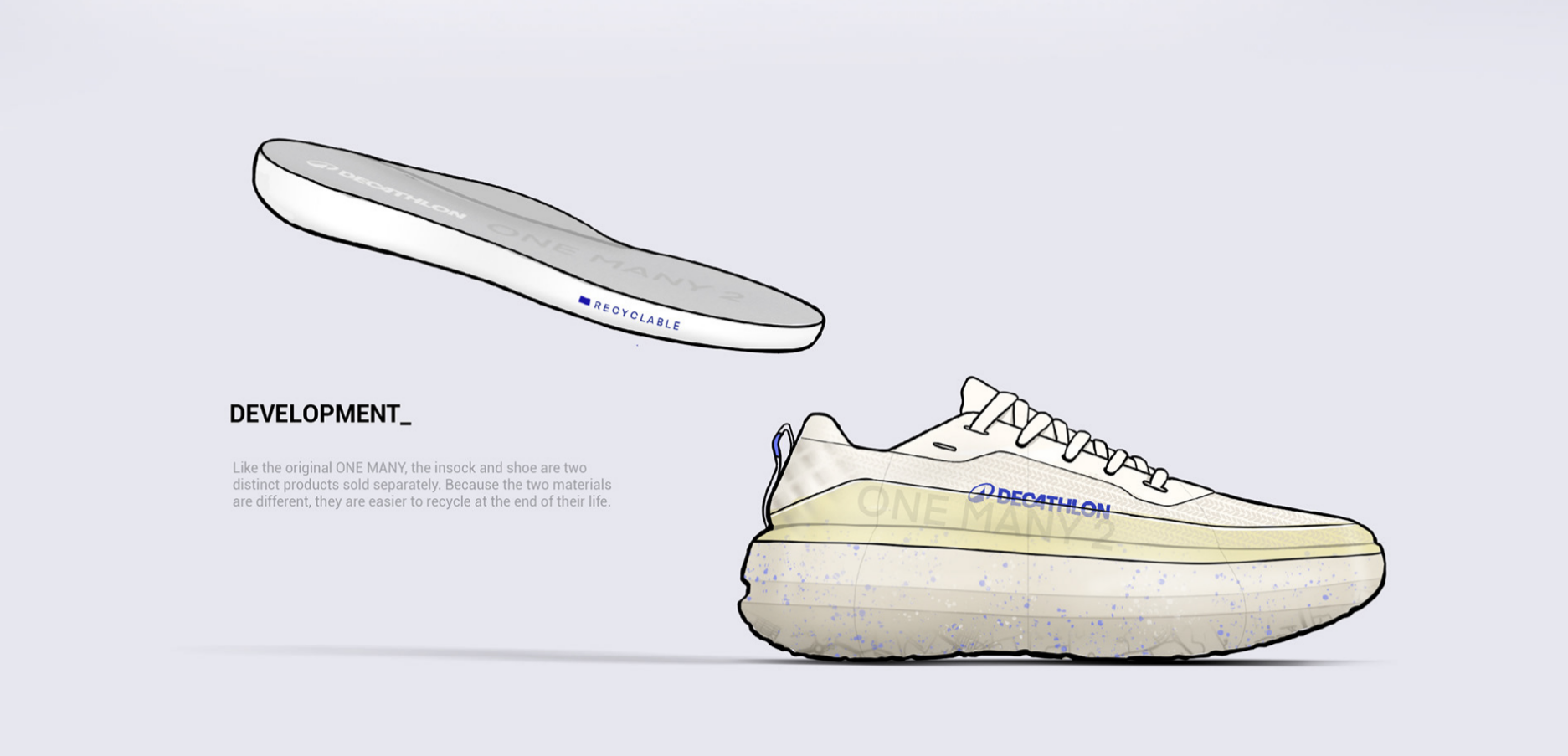 The Decathlon shoe that impressed me most was the NewFeel ONE MANY, launched in 2011, for its replaceable shoe with a retained sole, offering an economical and eco-friendly solution. Today, its design is outdated, inspiring me to revisit it with a 2024 perspective. I aim to create a 100% circular shoe for durability, incorporating TPU Thermoplastic Polyurethane, used in Decathlon's Reborn and Traxium Compressor models.