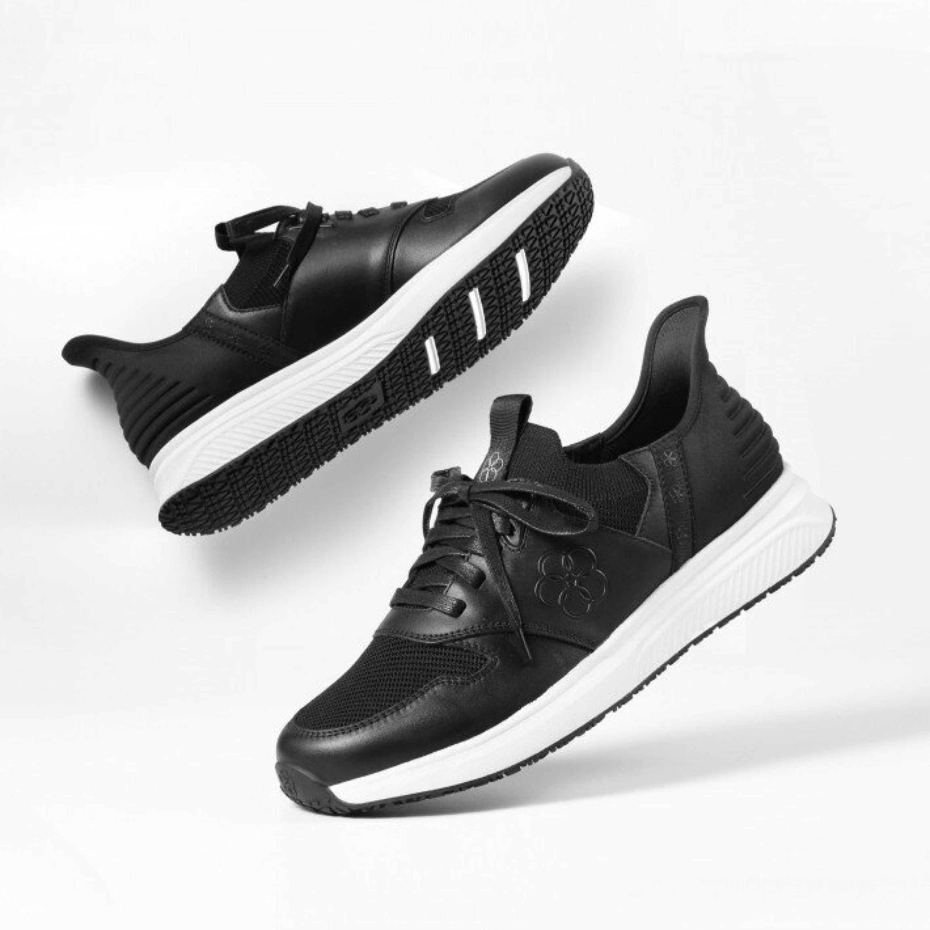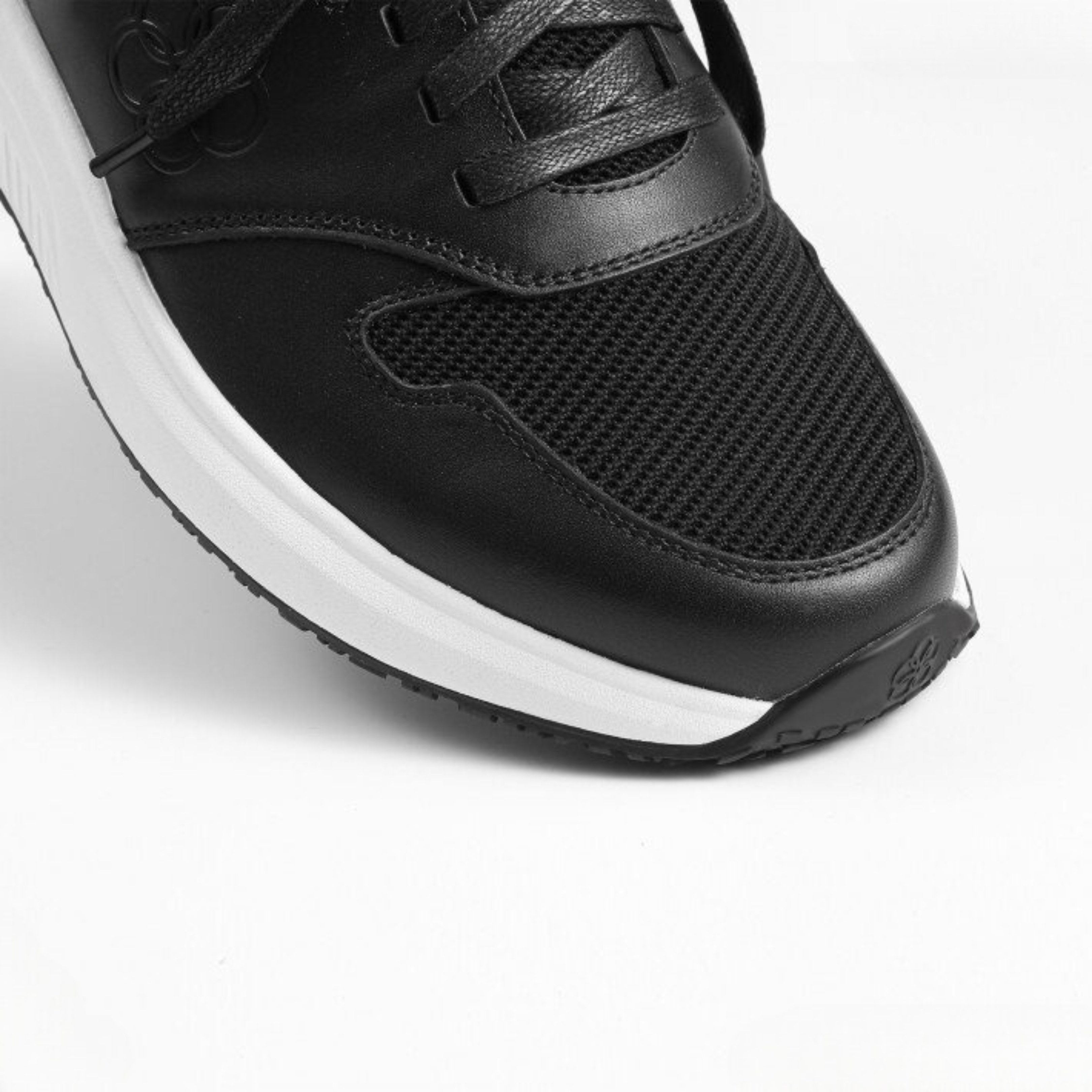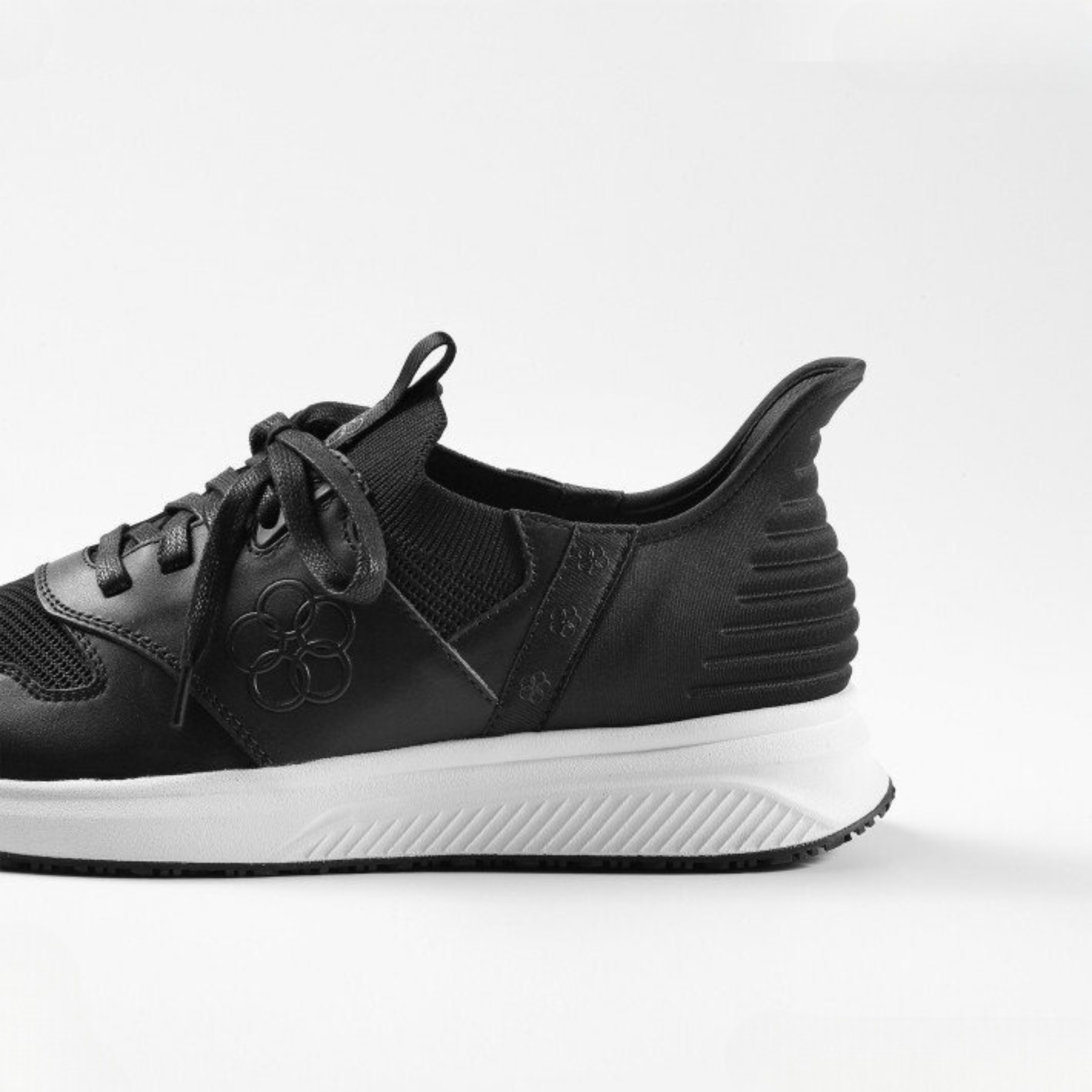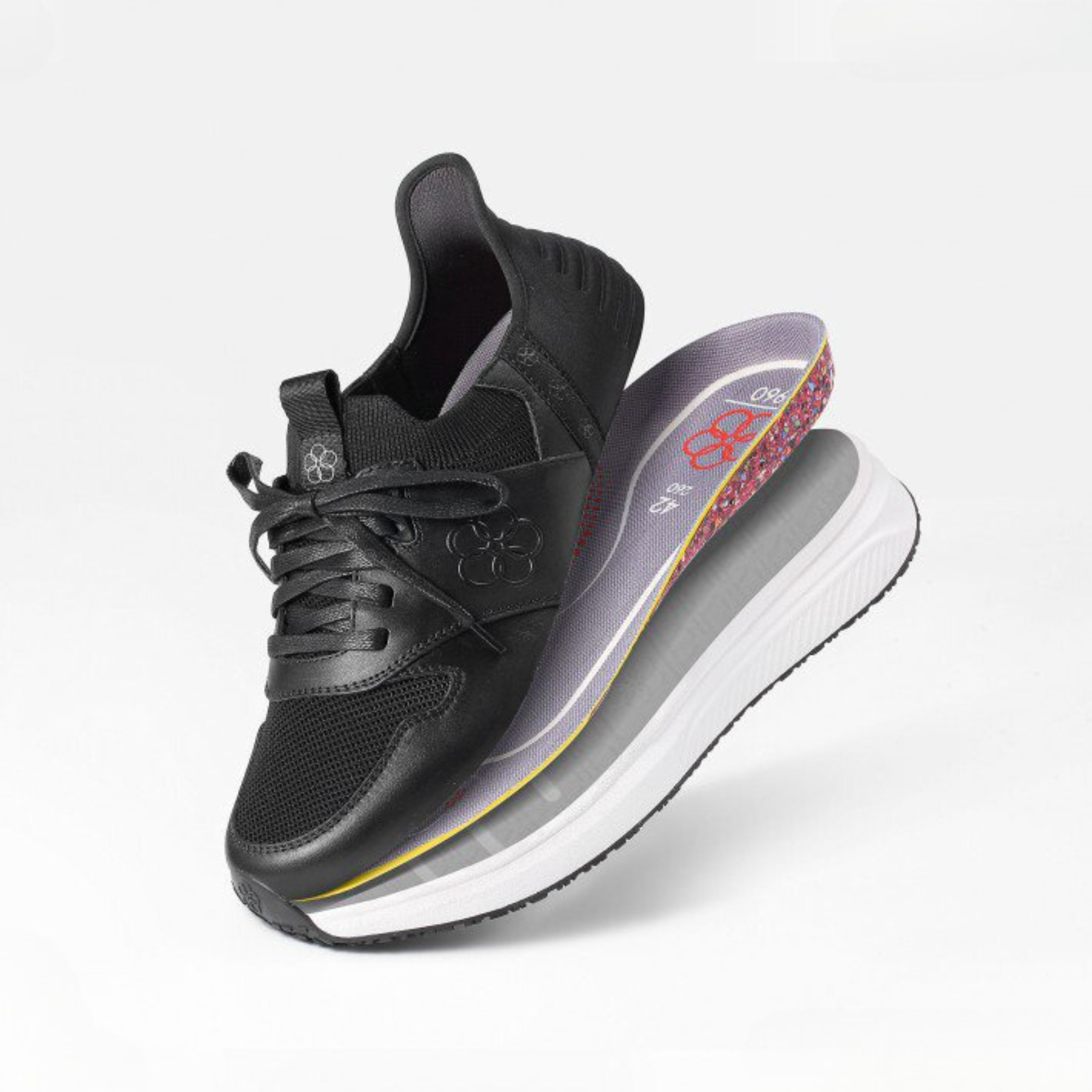 M809BK is inspired by shoe pullers, and geometric elements symbolizing stability. Its slip on design allows users to put on or take off the shoes more conveniently. Viewed from the rear, the outsole presents a stable triangular shape. The outsole pattern blends triangles and rectangles. The heel counter and the rear part of the outsole use arc shapes, while the upper adopts a trapezoidal shape. Those geometric elements enrich the overall design and functionally enhance stability and comfort.