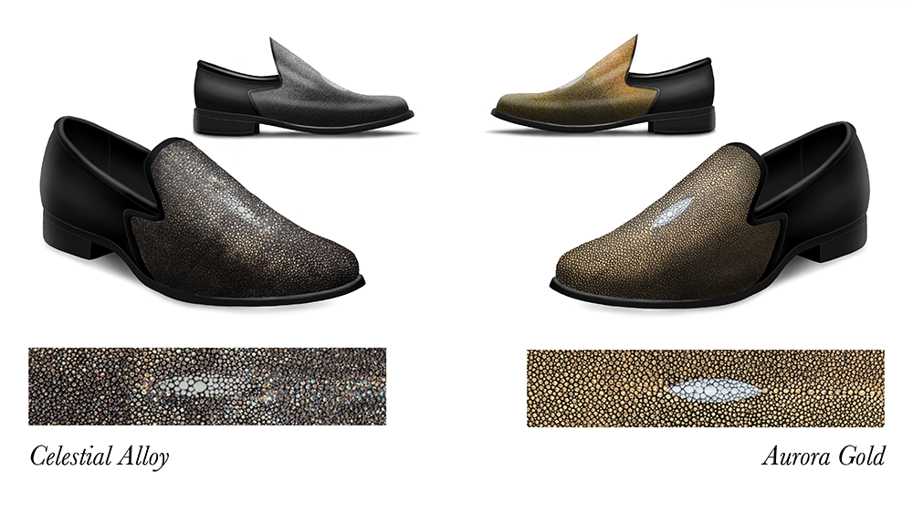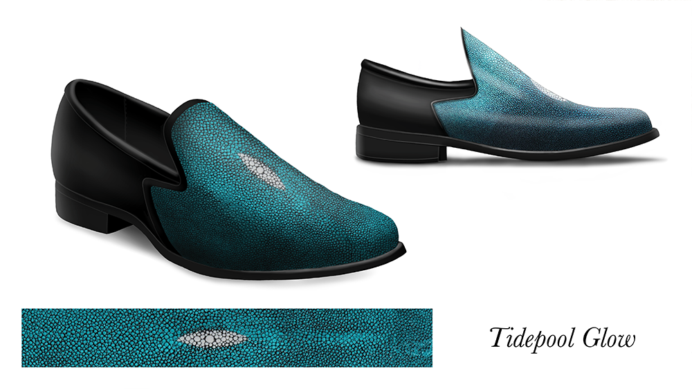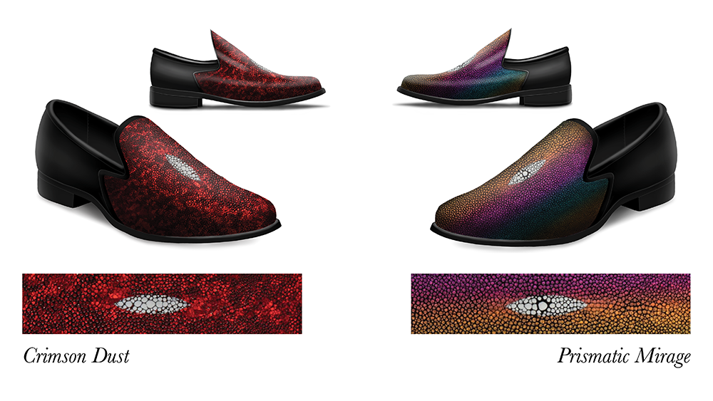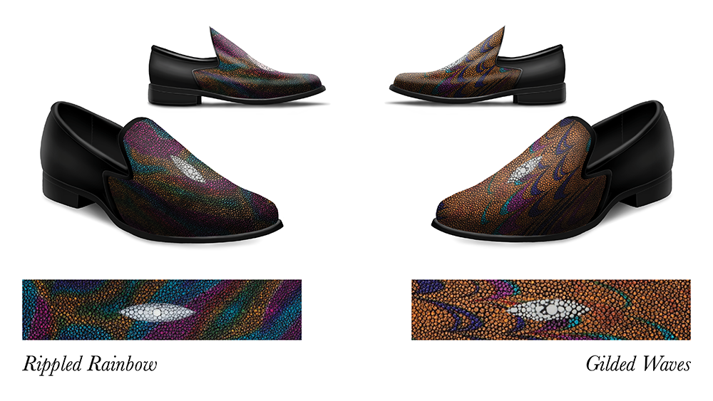 The "Stingray Elegance" men’s luxury dress shoe merges innovative material use with traditional craftsmanship, creating a unique product that stands out in the luxury footwear market. Crafted from premium stingray skin leather, this sophisticated shoe is available in captivating colorways. Designed for a gentlemen seeking a statement piece for their formal wardrobe, the "Stingray Elegance" is perfect for special occasions, business attire, and upscale events, appealing to customers who appreciate exclusivity and luxury while making a bold statement.