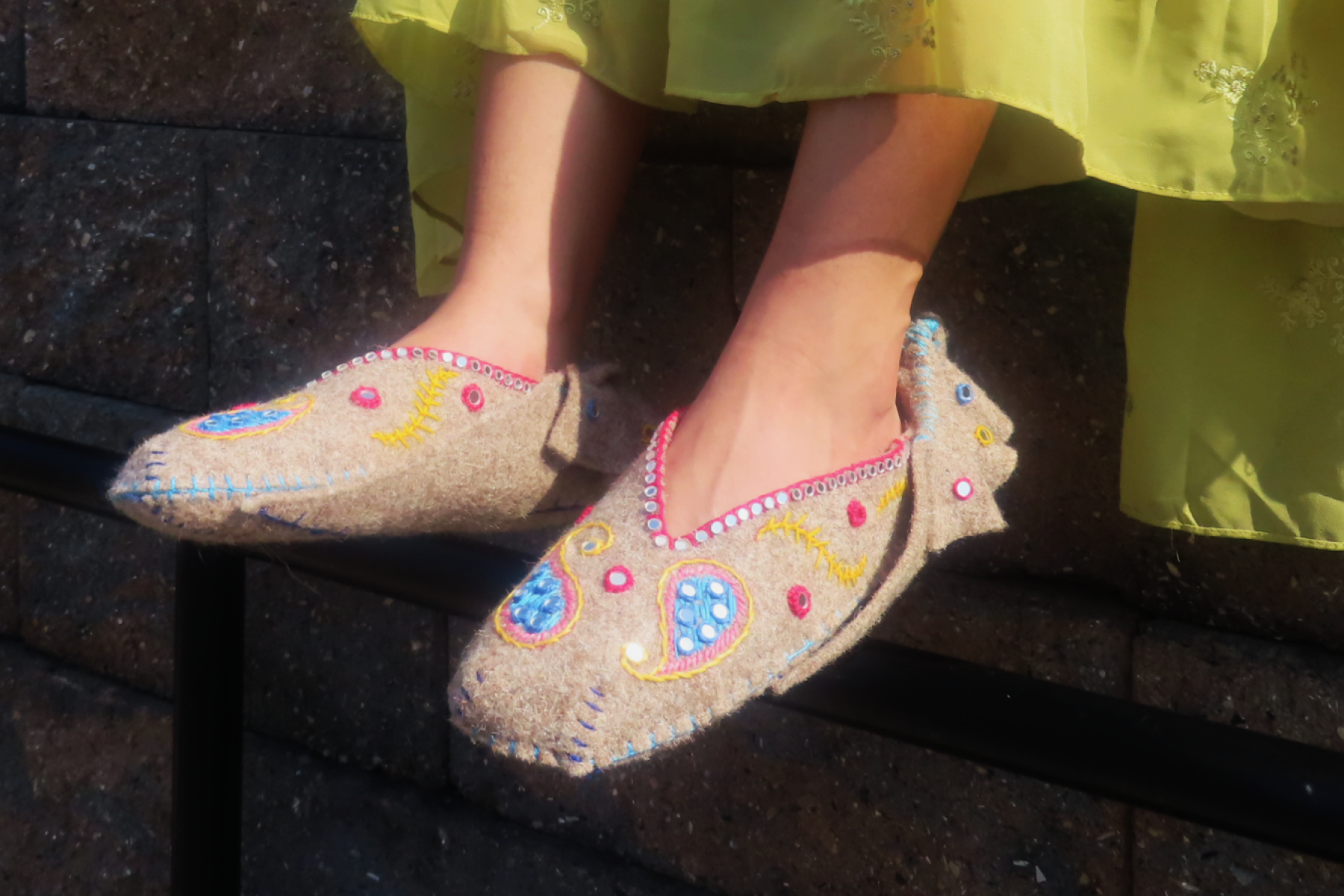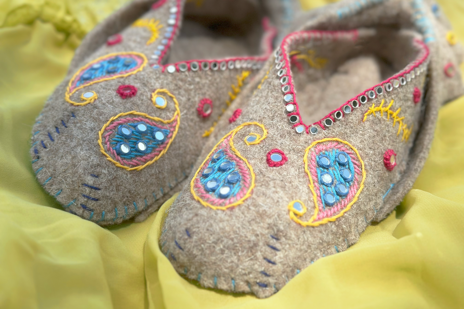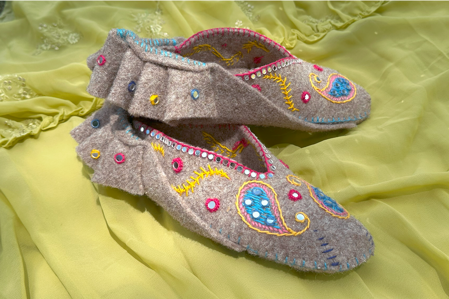 RANI blurs the line between the past and the present by rethinking the traditional Indian mojari shoe, commonplace during traditional Indian festivals and events. Made with a simple 3 piece pattern and 100% wool felt, RANI delivers a bold statement while being sustainable and resource efficient.