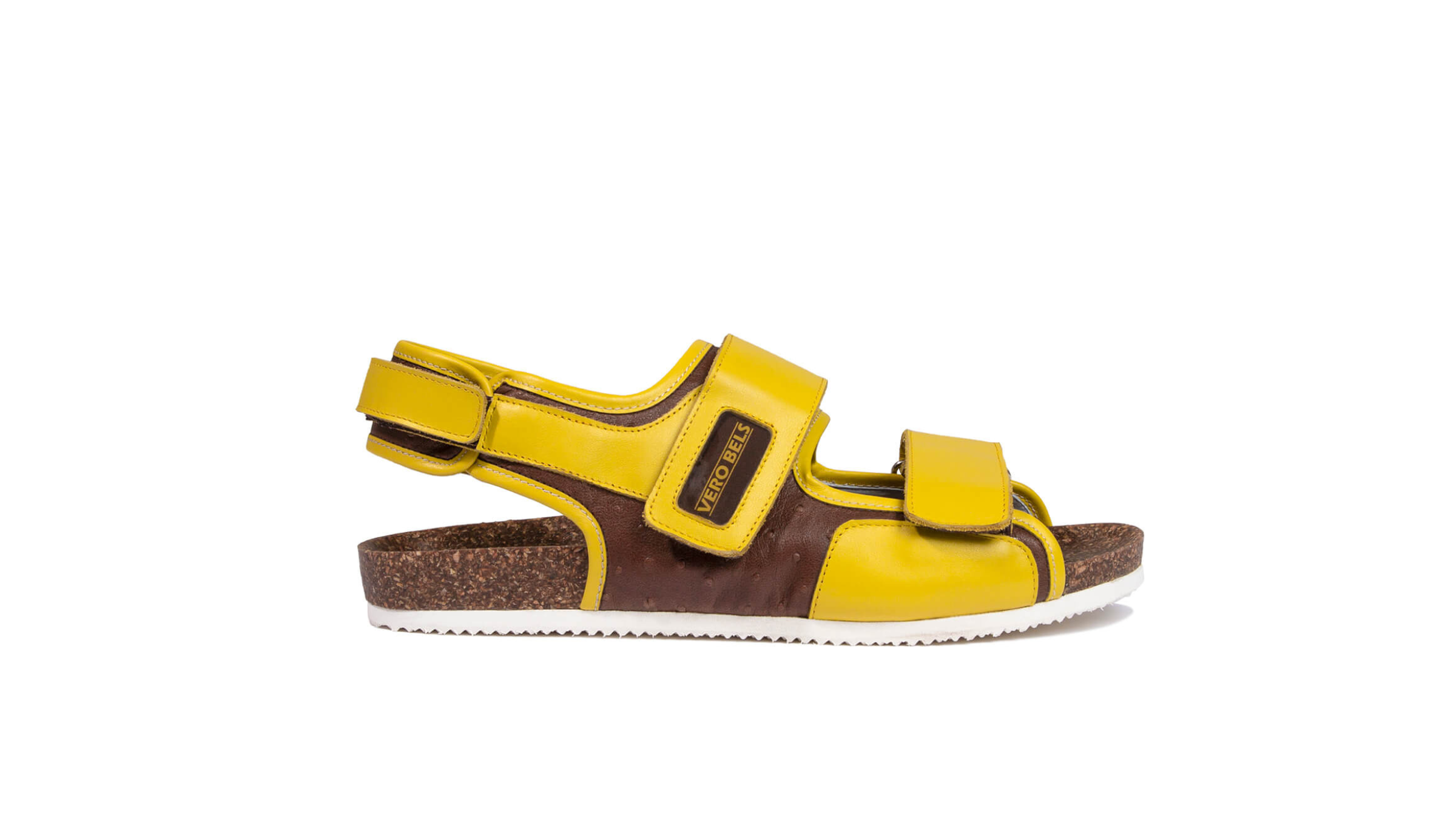 Vero Bels by Michael Loofer shows us how a sandal can be a comfortable and sporty solution. Without giving up on style. The bright canary leather creates a perfect contrast with the brown ostrich leather. This classic design sandal has Italian quality and a great contemporary outlook and it’s perfect for being comfortable during a hot summer day.