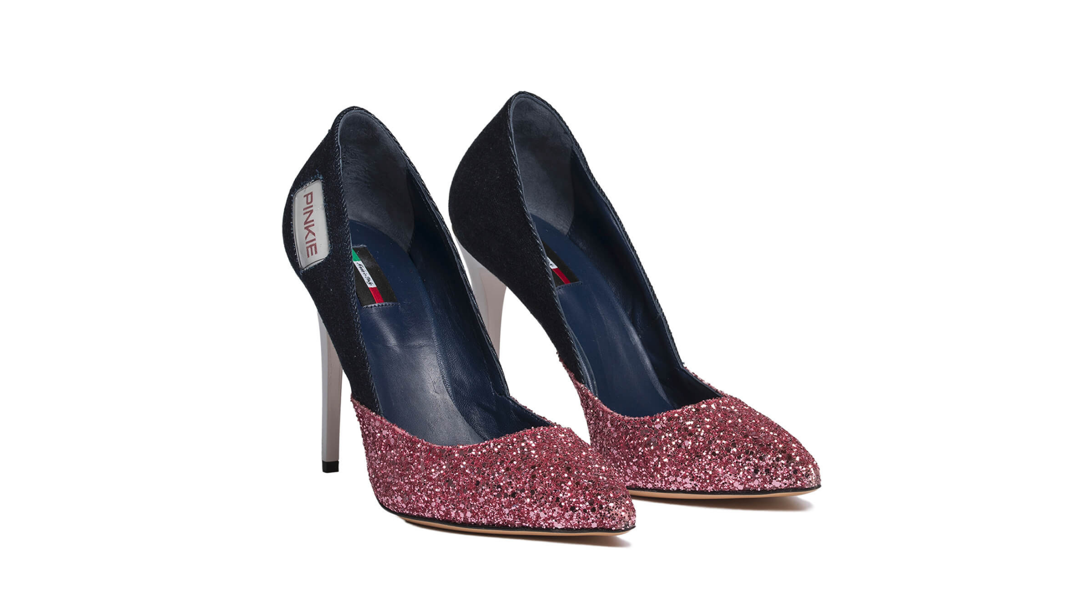 This Pinkie decolletè has the amazing designer fashionista touch. The cool mix of jeans pattern and pink glitter has the perfect 2000’s look, keeping up with the latest fashion trends. This made in Italy simple high heel guarantees so many style points to a monochromatic outfit and is perfect for a night out and for the club!