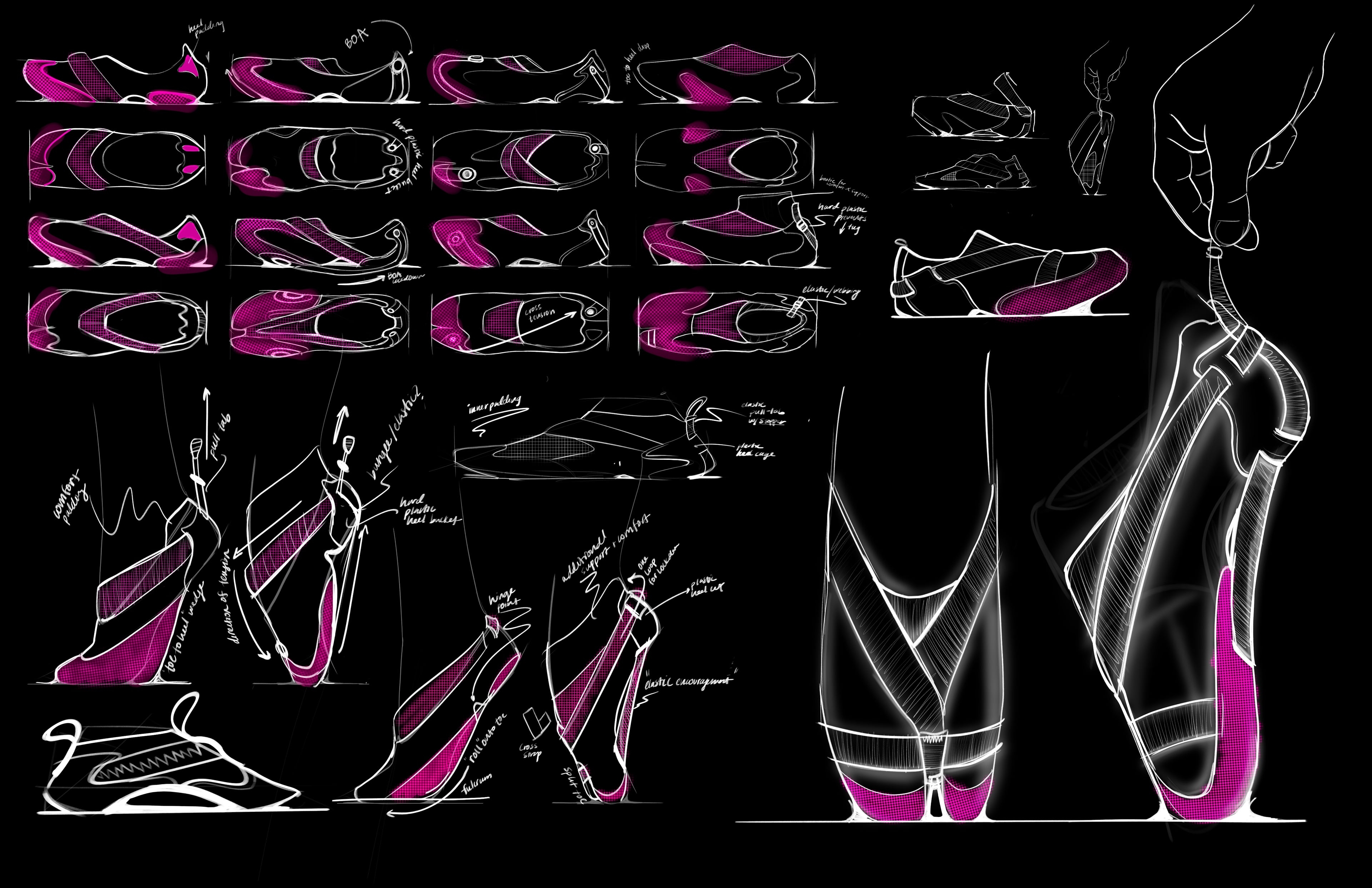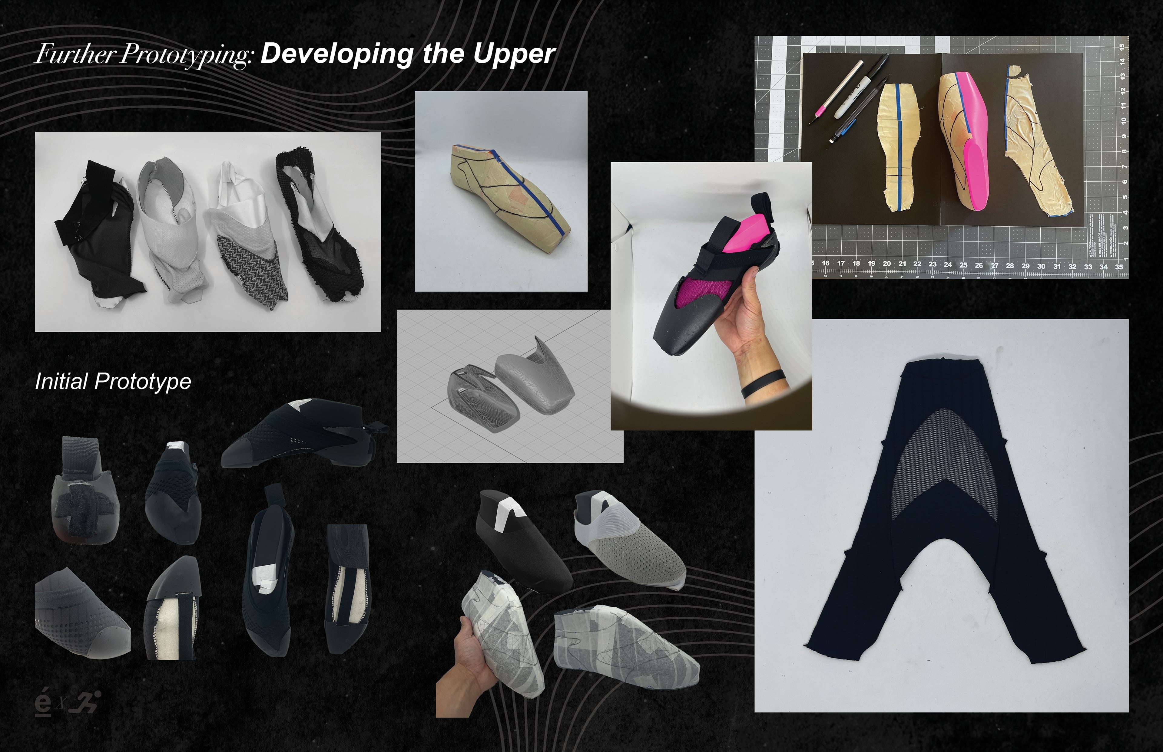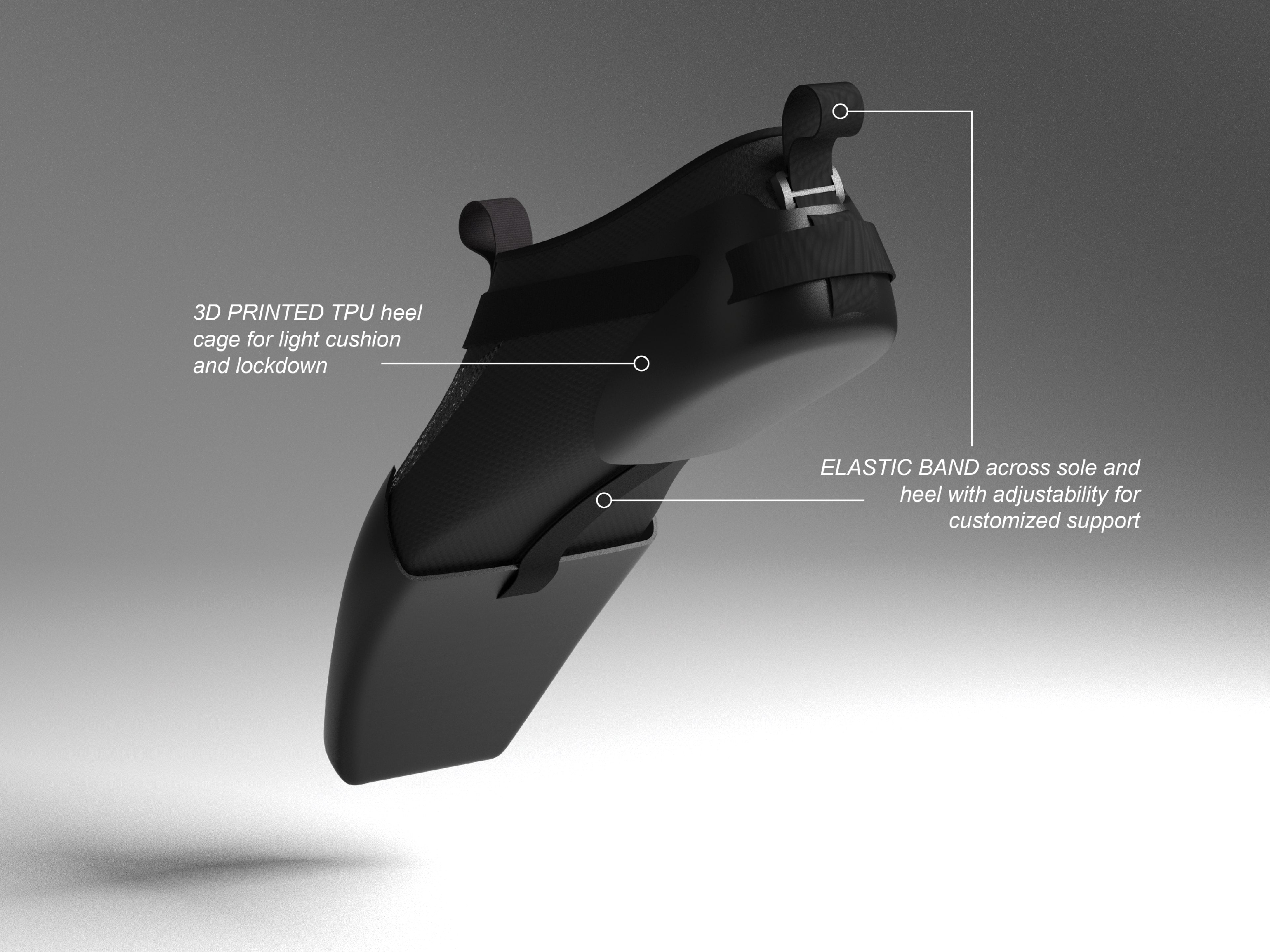 elevé features adjustable elastic straps, 3D Printed TPU toe and heel cages, as well as soft sweat wicking materials, all with intent to support dancers as they get on point.